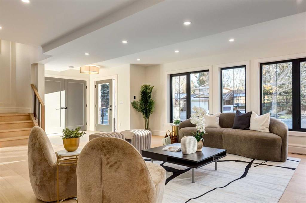 Welcome home to Varsity Estates! Presenting a beautifully designed family home crafted by Maxime Chin Interior Design and built by Platinum Builders, this residence offers timeless elegance with warm, high-quality finishes. The open-concept layout seamlessly connects the living room, dining area, and custom kitchen, featuring an 11-foot Vicostone honed waterfall quartz island, a built-in panelled Sub-Zero fridge, and a Wolf gas range oven. Rift-cut white oak millwork and ash hardwood flooring are complemented by warm mahogany brown accents and soft, flowing curves, creating a unique ambiance that feels both contemporary and timeless. Every aspect of this house, from the French brass and matte black hardware to the curated collection of lighting, was thoughtfully and expertly executed. Adjacent to the dining area is a convenient two-piece powder room and a spacious mudroom, providing ample storage with access to the heated double-car garage, wired for EV charging. A private, bright office is tucked away on the main floor, ideal for working from home. The upper level includes a cozy living area with access to a backyard balcony. A luxurious primary suite featuring vaulted ceilings, two walk-in closets, a large ensuite with heated floors, steam shower and its own private front balcony. The ensuite is finished with oversized 5x10 Travertine porcelain tiles and a double vanity. Another bedroom with its own ensuite bath and walk-in closet also provides access to the back deck. The upper floor is completed with two additional bedrooms, a five-piece bathroom, and laundry room. In the fully finished basement, a spacious living area with built-in cabinets and a wet bar is accompanied by an additional bedroom, a full three-piece bathroom, and a versatile flex room suitable for use as a gym, den, office, or playroom. The backyard features a covered deck with a gas BBQ line and a cozy fire pit area, perfect for outdoor entertaining. This home is situated on a large lot, surrounded by the Silver Springs Golf Course. Varsity, one of the top-rated communities in NW Calgary, was previously voted #1 by Avenue Magazine. It is close to top schools, the University District, Market Mall, and hospitals, offering an excellent opportunity to own a home in this highly sought-after neighbourhood.
