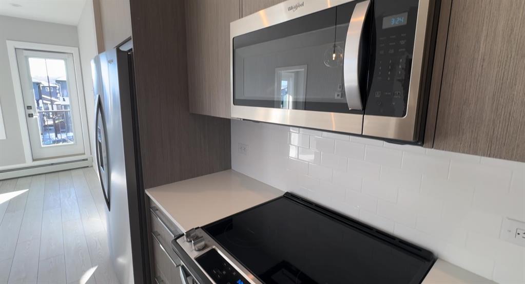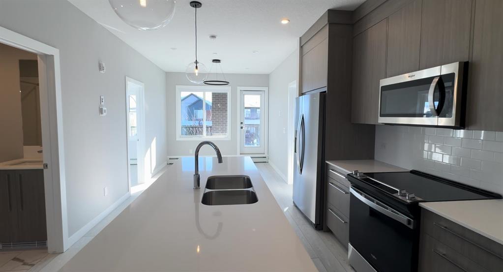 Welcome to your new home in Wolf Willow, a vibrant and emerging community! This newly constructed corner unit condo, situated in the Harlow building completed in October 2024 by the esteemed Truman, offers an impressive layout with three spacious bedrooms and two modern bathrooms, making it ideal for comfortable living and growing families. With an open-concept design and 9" ceiling that fills the space with natural sunlight, this apartment creates a warm and inviting atmosphere throughout. The contemporary kitchen features quartz countertops, a large island perfect for entertaining, and brand-new stainless steel appliances that come with a one-year warranty from Coast Appliances. This unit also includes in-suite laundry with a stacked washer and dryer, and a luxurious primary bedroom with tray ceilings, a walk-in closet, and an ensuite bathroom equipped with a glass shower. Enjoy your oversized patio, complete with a built-in BBQ line, perfect for outdoor dining. Wolf Willow is a developing neighborhood with ample green space, making it ideal for outdoor enthusiasts seeking a peaceful environment. The location offers easy access to the Bow River and the stunning Fish Creek Park, as well as being just a five-minute drive from the Blue Devil Golf Course. For pet owners, there is a dog park nearby, and cleanup will be a breeze with access to FREE pet wash facilities in the neighboring building. Residents will also benefit from complimentary access to a gym, a courtyard featuring fire pits, and a spacious recreational room that can be booked for events. The unit includes one titled underground parking stall. Additionally, the community features themed parks, environmental reserves, future schools, and trails along the Bow River, enhancing the neighborhood’s appeal. With convenient access to transit routes (444 and 168) and the Somerset-Bridlewood LRT, as well as nearby shopping, childcare, and recreational facilities, this home is perfectly situated just off Stoney Trail for quick commutes. Enjoy the benefits of modern living in a serene, sun-filled setting with plenty of open space to explore. The unit comes with full one-year warranty coverage, providing peace of mind in your brand-new home. Don’t miss the opportunity to be part of this exciting community—schedule your viewing today! Alberta New Home Warranty Program is transferrable to the new owners: 1 Year on Workmanship & Materials. 2 Year Warranty of Delivery & Distribution System, 5 Year Building Envelop Coverage, and a 10 Year Structural Warranty.