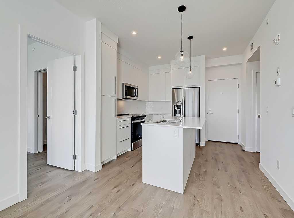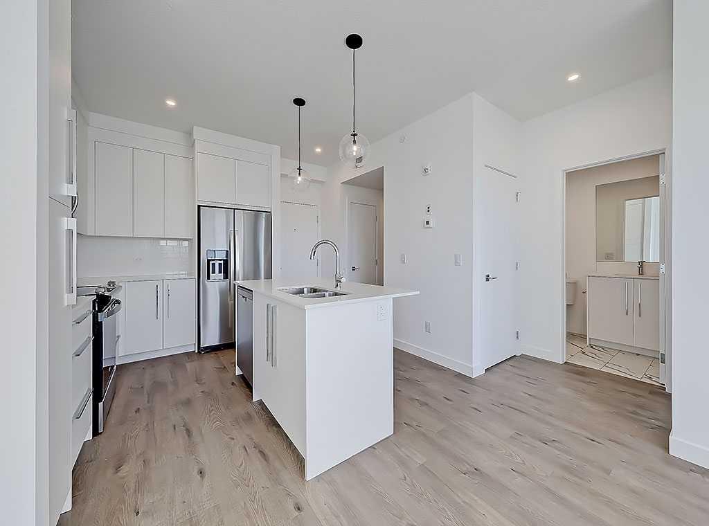 TOP FLOOR UNIT | AMAZING VIEWS | HEATED UNDERGROUND PARKING | STORAGE LOCKER | LAMINATE FLOORS + TILE ALL THROUGHOUT | NEW; NEVER OCCUPIED | 685 SQ FT OF LIVING SPACE (2 BED + DEN/2 BATH) | All in “WOLF WILLOW” - a vibrant new community situated beside the scenic Bow River, seamlessly blending nature with modern living! Enjoy quick access to schools, shopping, and major roadways, making it ideal for families and professionals alike. Whether you're strolling along the river, enjoying the playgrounds, or exploring the trails, Wolf Willow is a place to call home for those who love nature and convenience in equal measure. Stepping through the front door, you’re greeted by a large entryway with a convenient front hall closet. There is a spacious den adjacent to the front entrance making it perfect for a home office! The well appointed kitchen features top end stainless steel appliances, quartz countertops, and loads of full-height cabinetry with soft-close doors, drawers and even a pantry! As you move into the open concept living space, the windows reveal southeast facing views of Wolf Willow and a large east facing balcony. The living/dining spaces are generously sized making it perfect to entertain family and friends! You’ll find the bedrooms are well separated on either side of the living space providing extra privacy. The primary suite has a large walk-in closet and well designed 3-piece ensuite. The second bedroom is well sized and is located next to the in-suite laundry and the stunning 4-piece bathroom. Harlow has fantastic building amenities including a fitness center, pet spa, owner’s lounge, and a party room! With shops steps away, a premier gold club across the road, the bow river down the street and endless amenities within blocks, Harlow is the ultimate blend of nature and modern living! Don’t miss the opportunity to own this exceptional home!
