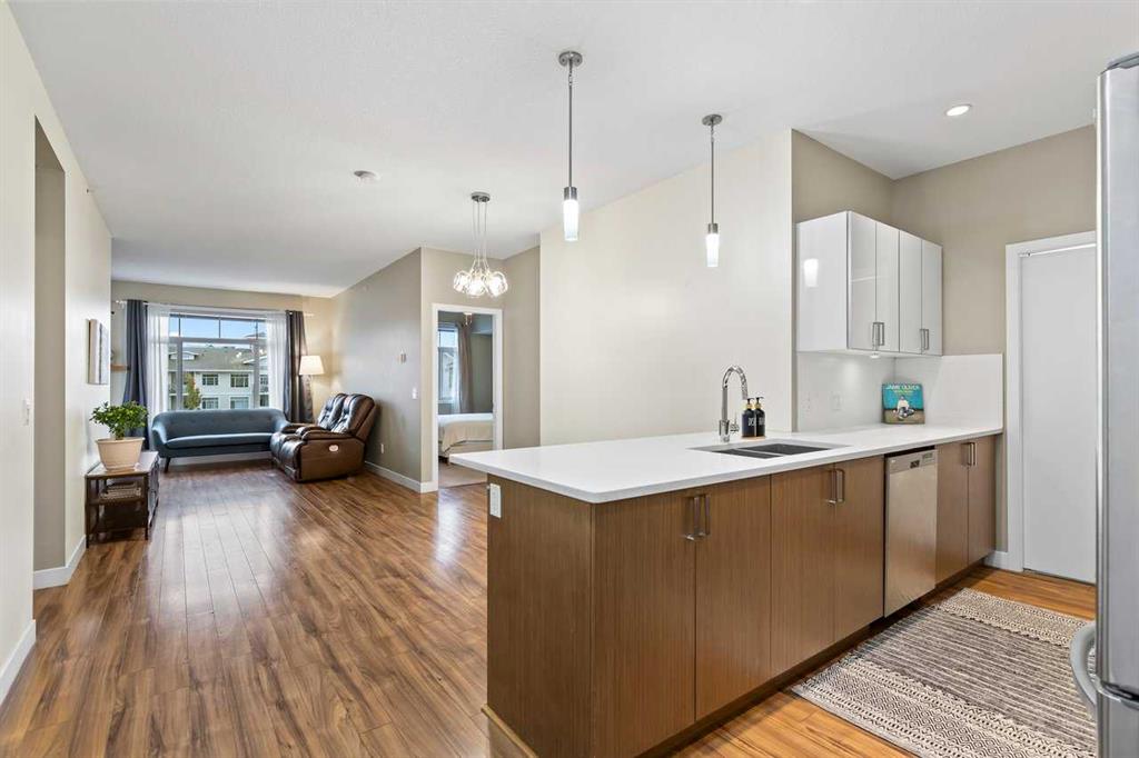 Public Remarks TWO BEDROOM TWO BATHROOM plus DEN. Top floor unit in a popular Auburn Bay complex. Modern, functional kitchen. Open layout with lots of natural light. Good sized bedrooms. Large den which can be easily used as a third bedroom, office or even gym. Cozy balcony with gas line big enough for patio furniture. Heated underground parking, storage locker and unbeatable location makes this unit the best choice. Don't miss it!