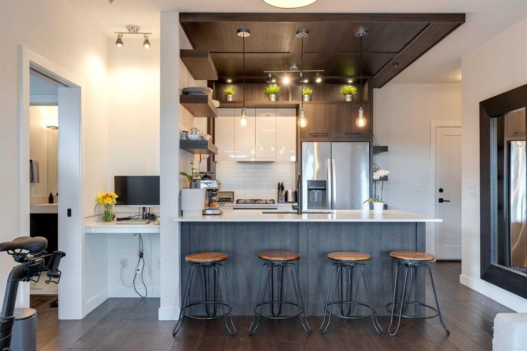 Public Remarks Welcome to the trendy and sophisticated Condo 1741 located in the heart of sought-after Shaganappi with a very short & convenient proximity to Downtown. This 2 bed & 2 bath apartment, impeccably designed by Truman Homes, offers a beautifully balanced marriage of modern elegance and practicality. Illuminated in natural light, this unit features 9 ft ceilings, a stunning contemporary kitchen with 2-tone cabinets and high-end finishes, open shelving, white subway tile backsplash, sleek quartz countertops, designer stainless steel appliances including efficient countertop gas stove and built in oven, stylish lighting, built-in desk area and eating bar spacious enough to accommodate 4 guests. The bedrooms are separated by the main living space with access to the south facing balcony including a gas line for a BBQ. The master bedroom comes with a luxurious ensuite showcasing a large walk-in shower with marbled tile accents along with a walk-in closet complete with organizers. The generous 2nd bedroom offers ample closet space and the convenience of the nearby 4pc bath. Not to forget the in-suite laundry, that completes this unit. The unit comes with a storage locker located on the same floor, as well as bike storage, and a titled, heated, underground parking stall. The building is located 3 blocks from the LRT station. There are schools, parks, off-leash dog parks, recreation centre, golf course, numerous sports courts and playgrounds all within walking distance. Embrace the lock-and-leave lifestyle and explore the dynamic neighborhood, from vibrant cafes, restaurants & pubs to boutique shopping. Don't miss this opportunity to experience urban luxury – book your showing today!