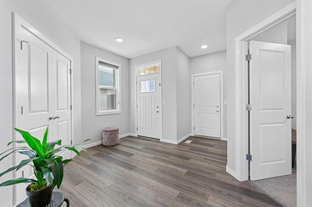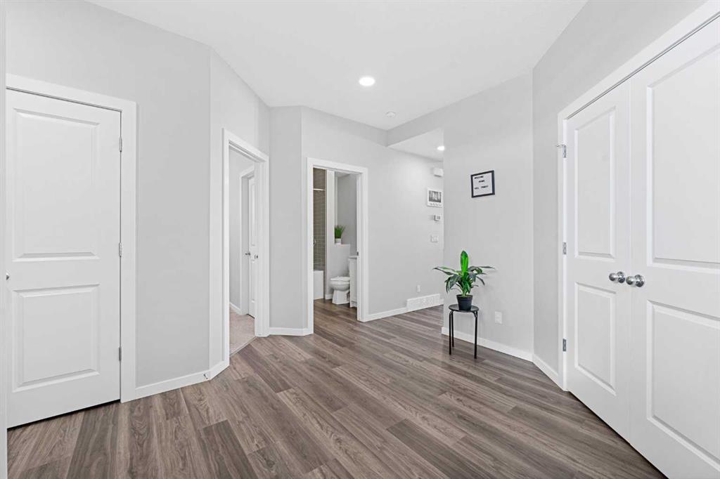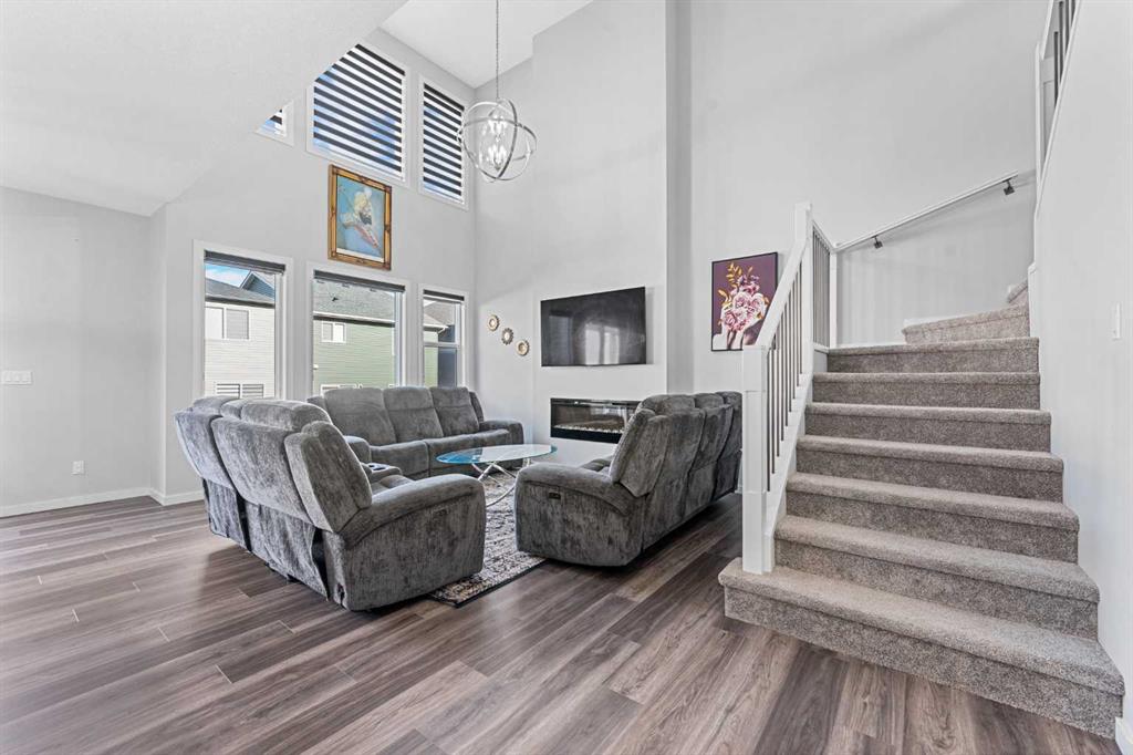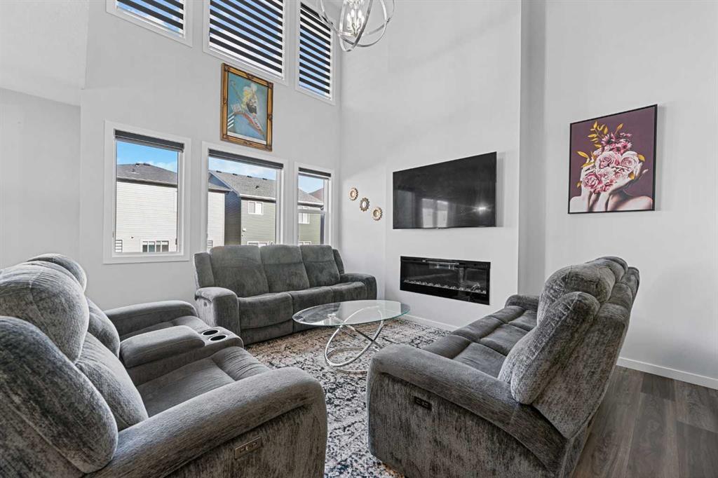 Directly Across From the Future CBE Saddleridge School | 2,261 SqFt | Main Level Primary Bedroom | Luxurious Finishes | Chef's Kitchen | Stainless Steel Appliances | Quartz Countertops | Open to Below Ceilings | Expansive Living Space | Upper Level Family Room | Upper Level Laundry | Large Bedrooms | Side Entry to Basement | Fully Fenced Backyard | Large Deck with Gas BBQ Line | Ample Lawn Space | Front Attached Double Garage | Driveway | Amenities Nearby | Surrounded by Walking Paths. Welcome to this stunning 2-storey family home boasting 2,261 SqFt throughout the main and upper levels with an additional 984 SqFt in the basement level with a separate side entrance. Located directly across from the future CBE School, this location can't be beat! Open the front door to a grand foyer with closet storage to keep this space clutter free! The primary bedroom on the main level is a treat for a large family; this is paired with a walk-in closet and cheater door to the 3pc bathroom. The open floor plan is inviting to guests and makes this home great for entertaining friends and family. The kitchen is outfitted with full height cabinets, quartz countertops, stainless steel appliances and a walk-in pantry for dry goods storage. The large centre island has space for barstool seating which is perfect for small meals and socializing. The dining room is bright with natural light that beams through the sliding glass doors that lead onto the large deck. The living room with open to below ceilings truly emphasizes the size of this home. Centred with an electric fireplace, the living room is stylish and comfortable. Upstairs holds 3 bedrooms, 2 full bathrooms, a bonus room and laundry. The primary bedroom is a personal oasis; the spacious bedroom is coupled with a walk-in closet and 5pc ensuite bath. The ensuite has a deep soaking tub, walk-in shower and double vanity. Bedrooms 2 & 3 on the upper level are both a generous size and share the main 4pc bath with a tub/shower combo. The bonus room upstairs has vaulted ceilings and is a great airy space to relax in the evenings with the family. The laundry being upstairs is every home owner's dream as its located near all the bedrooms. Downstairs, the unfinished basement has a separate side entry and rough-in plumbing. This space is ready to be transformed to fit your family's needs! Outside, the fully fenced backyard has a large lawn and deck. The deck is a great space for an outdoor dining set during the warm summer months. The front attached garage & driveway allow for 4 vehicles to be parked at any time plus street parking is available too. This home is a minute's walk to all shopping amenities, park, playground and walking/biking paths. Hurry and book a showing at this incredible family home today!