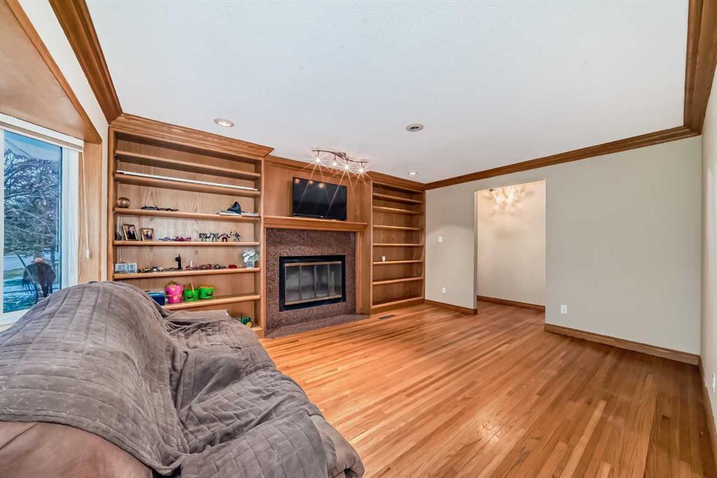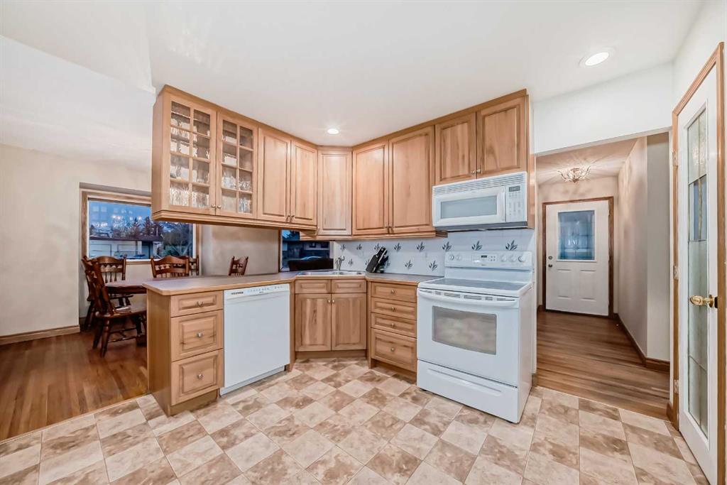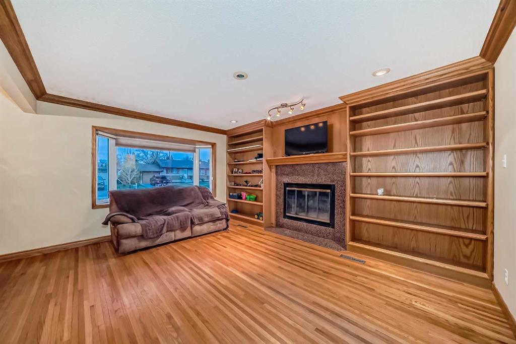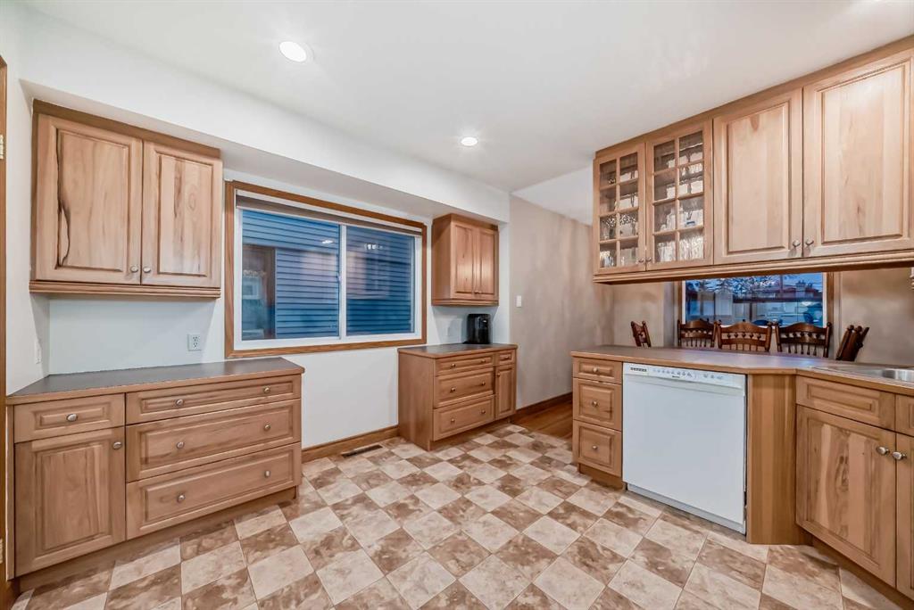 1263 square foot bungalow in charming OLD TOWN. 4-bedroom, 2 bath home with oversized detached garage on generous lot. On a quiet tree-lined street this location is terrific! Quick and easy access to the QE2 highway AND it is centrally located to schools, shopping & restaurants. Spacious living room with original hardwood floors, custom built-ins centered on cozy wood burning fireplace. The kitchen with updated cabinetry offers plenty of prep space and storage for all your culinary needs. A total of 3 bedrooms on the main floor including the very large primary bedroom (2 bedrooms were amalgamated into one) and updated main bath. Enjoy the expansive bedroom as it is or the additional space offers options to add a luxury walk-in closet, ensuite bathroom retreat or even a home office. Basement layout includes large family room, 3-piece bathroom, bedroom, games area and lots of storage. Large South facing backyard with 24x24 detached garage with 220V wiring, RV parking, vinyl fencing as well as a 2-car driveway. Upgraded electrical panel. Separate basement entrance. Quick possession available.