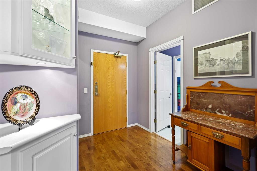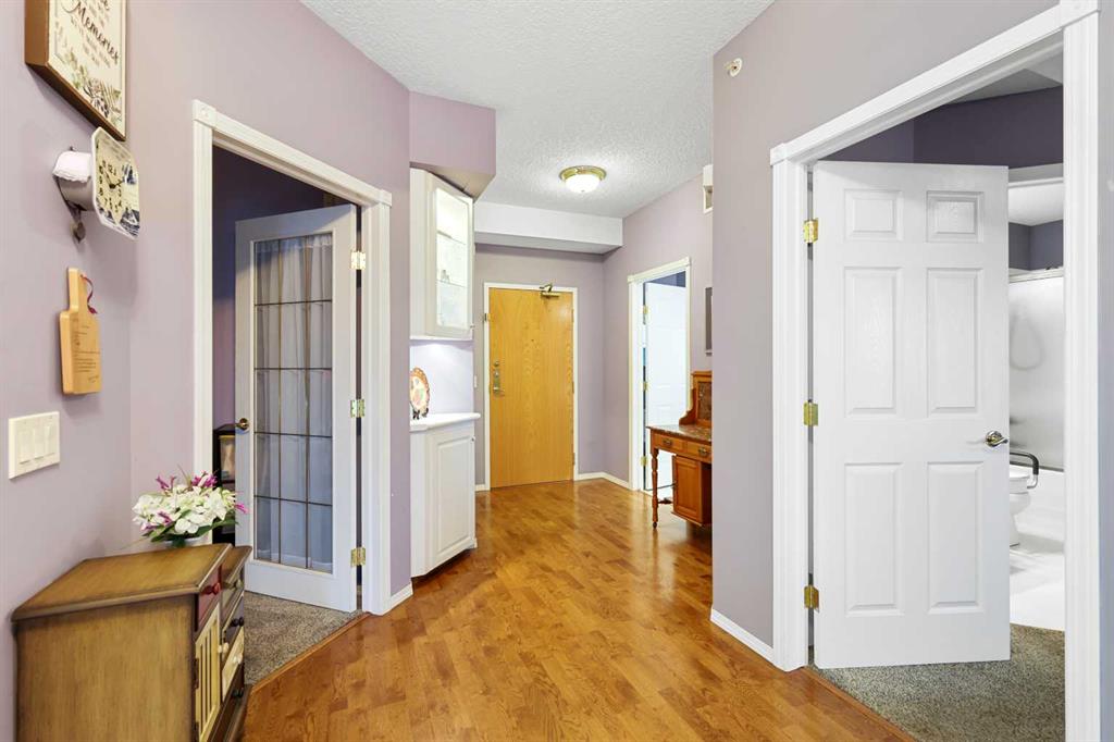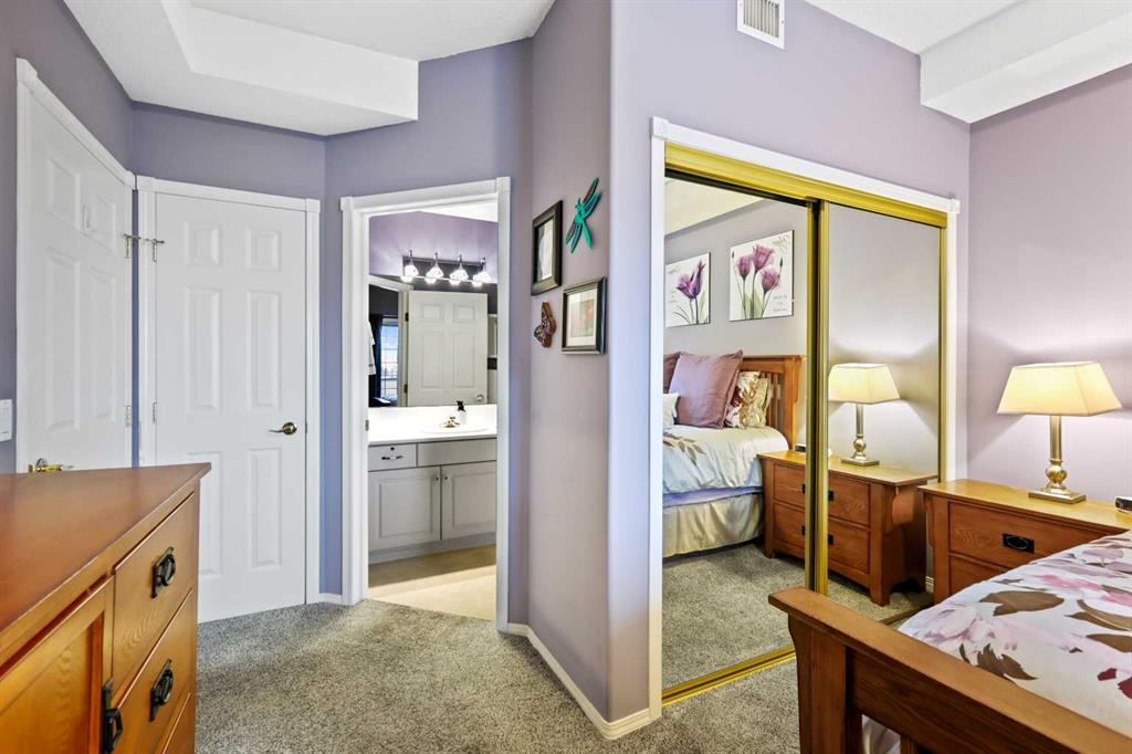 Welcome to the Sierras of Heritage Adult Condo Complex (55+), a must-see in Calgary's well-managed and conveniently located adult community. This quiet 55+ building features amazing amenities and offers a spacious 2-bedroom, 1.5-bathroom unit with an open floor plan encompassing 930 square feet. Enjoy the luxury of two assigned heated underground parking stalls (levels 1 and 2, #427) and a large storage locker in front of your parking spot. Situated on the 4th floor, this condo boasts 9-foot ceilings and a south-facing balcony that floods the home with natural light and provides stunning views of the Rocky Mountains. The complex features an indoor pool, hot tub, exercise room, games room with pool tables, library, banquet room, wood shop, car wash, movie nights, and 8 guest suites available for family and friends at an additional charge. The entryway flows into a spacious dining area, leading to a large kitchen with sunny windows and a cozy corner gas fireplace. The primary bedroom offers ample closet space and a 4-piece en-suite, while the second bedroom, equipped with a full closet, can serve as an office or guest room. Additional conveniences include in-suite laundry with a washer/dryer, a 2-piece bathroom, and extra storage. Located close to transit, grocery stores, banks, and restaurants, this condo provides an ideal lifestyle in a vibrant community. Don't miss your chance to call this beautiful space home!