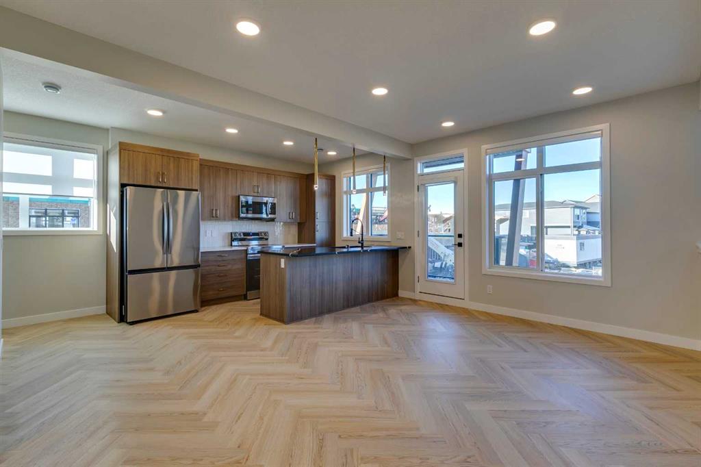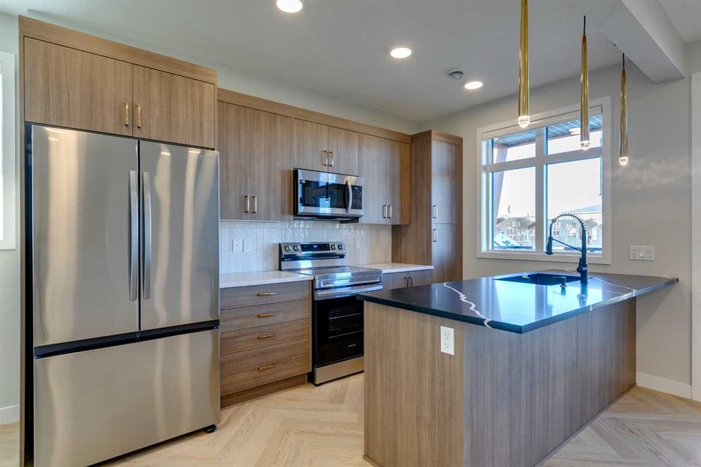 Public Remarks Welcome to the Fen by Rohit Homes! This stylish 1,317 sq. ft. townhome in the thriving community of Livingston, NW Calgary, offers the perfect mix of comfort and convenience. With 3 bedrooms, 2.5 baths, and a single attached garage, this home is thoughtfully designed for modern living. The main floor boasts a spacious kitchen, ideal for meal prep and gatherings, which flows into a bright living and dining area with access to a private balcony. Upstairs, you’ll find the primary bedroom, complete with a walk-in closet, ensuite, and a second balcony, creating a peaceful retreat. Two additional bedrooms, a stacked laundry, and a shared full bath provide convenience and space for family or guests. The interior design finishings have been meticulously selected by award-winning designer Louis Duncan-He, whose work has been featured in Architectural Digest, Style at Home, House and Home Magazine, and HGTV. Upgraded light fixtures, sophisticated herringbone flooring, and black and gold hardware throughout add a touch of elegance and style. Livingston offers easy access to major roads, shopping, dining, and recreation. Once completed, this vibrant community will feature over 1,000 acres of residential and commercial areas, beautiful parks, pathways, and a state-of-the-art Homeowners Association facility. Make the Fen your new home and enjoy all that this growing community has to offer! Contact us for more details!