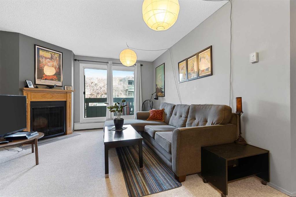 This exceptional second-floor condo in popular family-friendly Southampton Green is perfect for first-time buyers or investors. You’ll feel right at home as soon as you enter this quiet, well-maintained unit. In addition to a front clothes closet, it has a convenient storage room at the entrance door that’s large enough for bicycles and other items. And there’s additional storage on the spacious east-facing covered balcony - a great place to relax, barbecue or to gather with friends and family. The balcony is accessed from patio doors off the living room that allow natural light to bathe and brighten the interior while a wood-burning fireplace contributes to the comfortable ambience. The adjoining dining area is roomy enough for a full-size dining table and chairs. It’s right next to the galley kitchen which features newer, sleek, white cabinets, laminate counters, backsplash, appliances and a portable kitchen-island cart complete with butcher-block top and drawers for pots & pans and utensils. The generous-sized primary bedroom with walk-in closet is a comfortable retreat at the end of the hall which provides a degree of privacy. There’s a second bedroom and a 4-piece main bathroom. Shared laundry is outside the unit door across the hall. This condo has an assigned parking stall with plug-in and there’s abundant visitor parking. A separate clubhouse/recreation centre is just steps away and features a party room that’s perfect for larger social gatherings, a library, a squash/racquetball court, a well-equipped gym/fitness room, ping-pong table, outdoor basketball and tennis courts, even hopscotch, four square court and a playground. Southampton Green is close to several transit stops and it’s just a short walk to the Anderson C-Train station and a number of area schools. Grocery, shopping, including South Centre Mall and restaurants are nearby, and commuters can easily access MacLeod Trail, Anderson Road and the Stoney Trail ring road. Check out the 3D virtual tour and book your showing today!