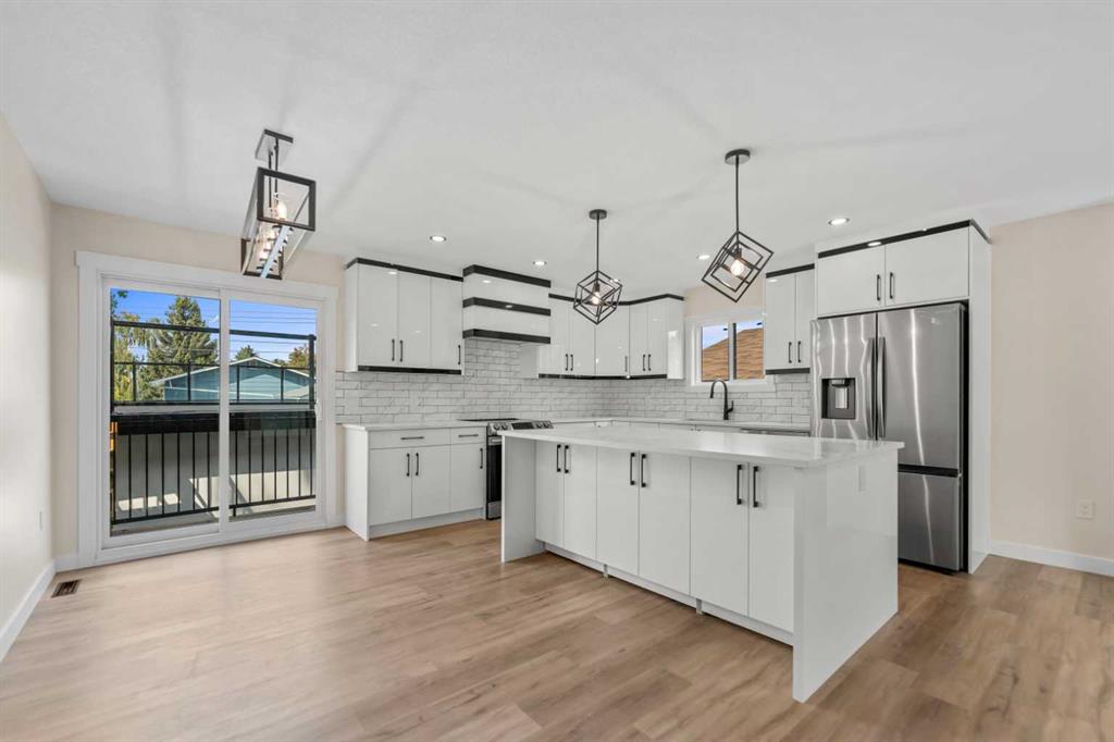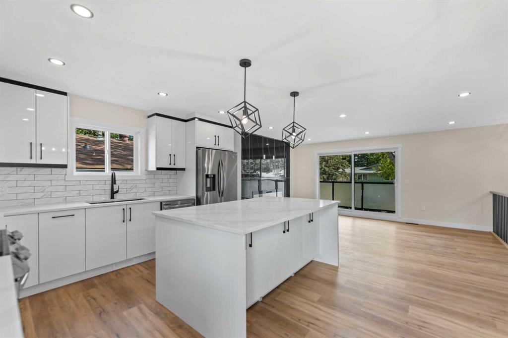 This larger Bi-Level home sits on a quiet tree lined side street in the wonderful community of Maple Ridge. FULLY RENOVATED FROM TOP TO BOTTOM. Measuring over 2200 square feet of developed living space, with a total of 4 bedrooms and 4 full bathrooms. The basement has large windows with a Large Family room with wet bar and cozy fireplace. Combine that with a flat roofed, oversized 23’3” x 21’3” double door, double garage and plenty of remaining yard space and all the pieces are there for you. RENOVATIONS Include ( FLOORING , PAINT, HARDWARE, DOOR, WINDOWS, ROOF, FURNACE , HOT WATER TANK, BATHROOMS, KITCHEN, APPLIANCES, ROOF TOP PATIO WITH GLASS RAILING, EXTERIOR STUCCO, LIGHT FIXTURES, ELECTRICAL / PLUMBING AND HEATING SYSTEMS ARE ALSO REPLACED ) A great location in the north east section of the community, you have a quick out onto Deerfoot and Blackfoot Trails yet are just off the golf course and walking distance to both the elementary and junior high schools.