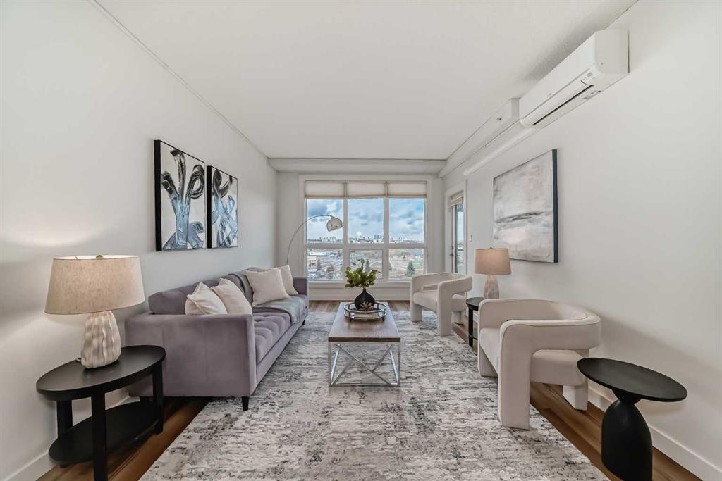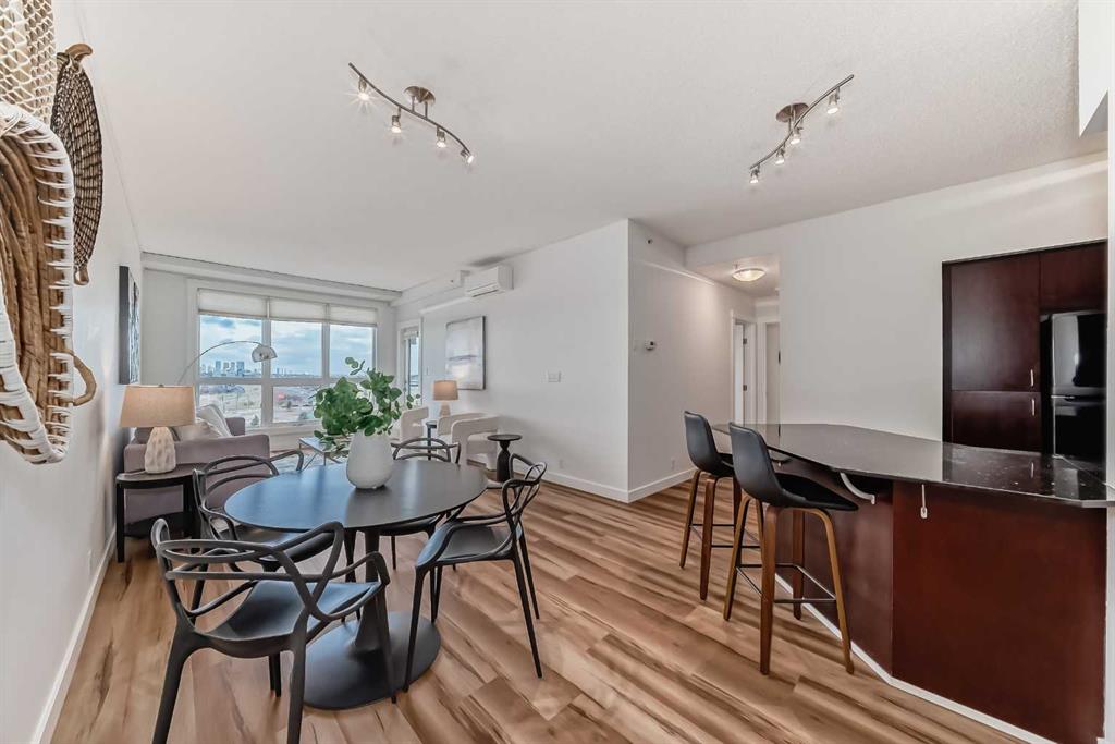 Welcome to style, comfort and convenience of the quiet, secure London at Heritage Station building. This beautiful two bedroom, two bath unit has been tastefully upgraded within the past year with professionally installed vinyl plank laminate ($8,000 cost); and bright paint ($6,600) throughout. As well, the owners have installed their own air conditioning unit ($7,900) to set you up for comfort during the heat of the summer months. As well, a professionally installed money-saving on-demand Rinnai water heater was installed at a cost of $8,300. The spacious, tiled entry brings you into an open concept home that has nine-foot ceilings and a spacious, bright living room that is perfect for a relaxing evening above the hustle and bustle of the world. The eat-in kitchen features granite countertops, plenty of cabinet space and room for two barstools so you can visit with guests as you prepare dinner. The bright primary bedroom has the privacy of a spacious ensuite and is mere steps from the unit's washer/dryer. This building has a concierge and security team, three elevators, a social room and rooftop patio on the 17th floor. You can walk through the heated garage to Save On Foods, Tim Hortons or many of the nearby restaurants and services. Walk to the Heritage C-Train station (visible from your home) or gain quick driving access to McLeod Trail. from a heated, underground parking garage.