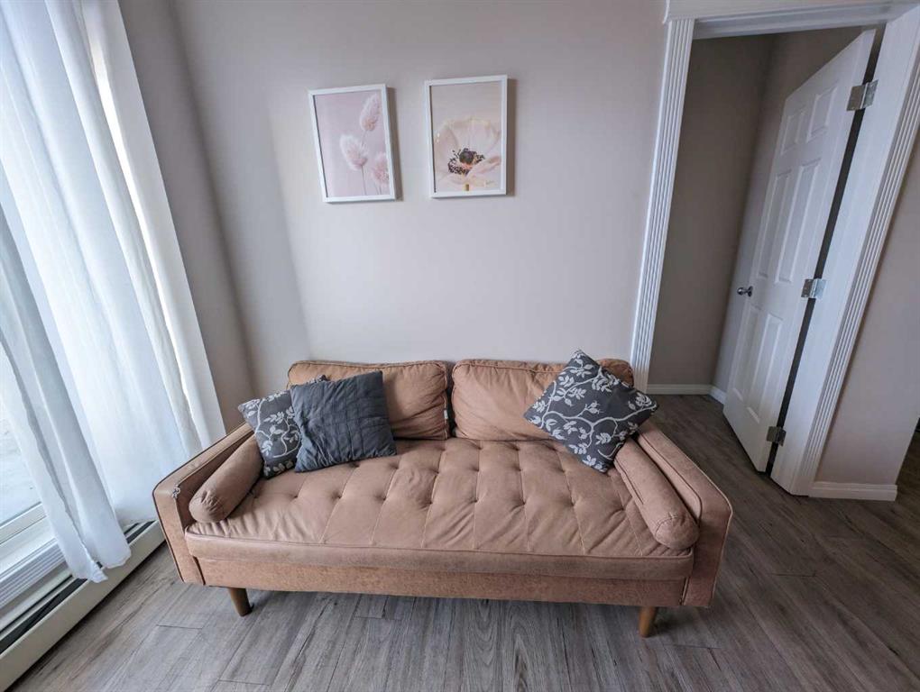 Luxury Inner-City Condo with GIGANTIC Patio and Downtown Views! This stunning 2-bedroom, 1-bathroom condo in the heart of Crescent Heights offers the perfect blend of urban convenience and modern comfort. The thoughtfully designed layout separates the two spacious bedrooms with a large living room, providing privacy and functionality—ideal for both homeowners and potential tenants. One titled parking space ensures convenience and security, while the condo’s location puts you within walking distance to downtown Calgary, offering access to shopping, dining, and entertainment. The unit boasts a GIGANTIC patio, perfect for hosting summer gatherings, BBQs, or simply enjoying breathtaking downtown views, a rare feature in the city. Inside, you'll find newer luxury vinyl flooring throughout, lending a sleek and durable surface that enhances the condo's modern feel. The kitchen is equipped with stainless steel appliances, making it a chef's delight, and seamlessly opens up to the living space, creating an inviting atmosphere for entertaining or relaxation. Crescent Heights, consistently ranked as one of Calgary's best neighborhoods, adds to the property’s appeal with its close proximity to parks, restaurants, and easy access to public transportation. This condo is perfect for those seeking a starter home, a prime investment opportunity, or simply the chance to enjoy the vibrancy of inner-city living with all the comforts of a modern, move-in-ready space. Don’t miss out on this incredible opportunity to make it your own!