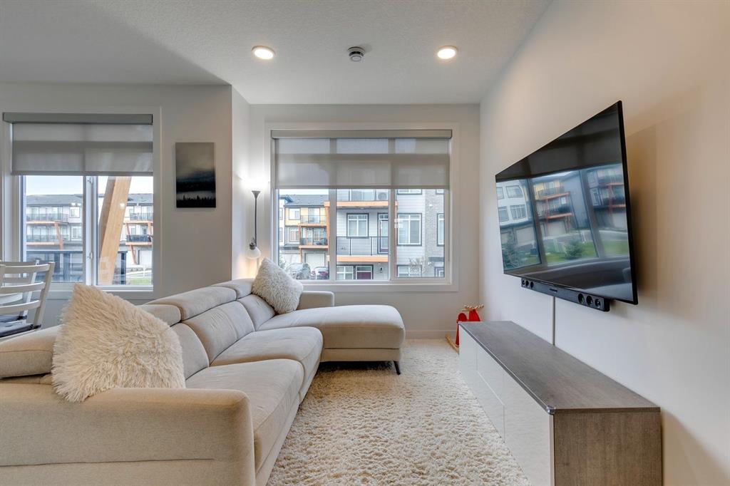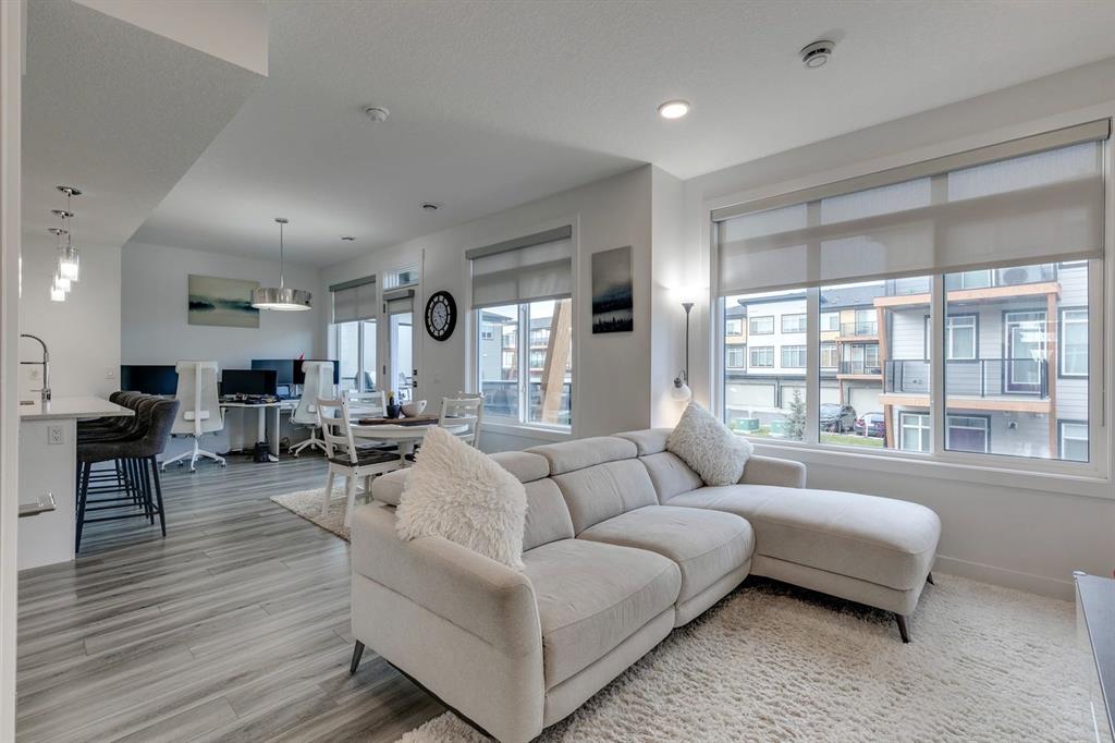 Bright and beautiful three bedroom townhome in lovely Seton. Spacious room design and quality finishes make it comfortable and warm. Open design featuring a wonderful kitchen with a long functional island. Luxurious flooring through out, quartz counters, light cabinetry, stainless steel appliances and more. Two and one half baths, a private entry and the nicely finished double garage just add to your ease of living. Close to all amenities Seton and surrounding communities have to offer including a short walk to the South Health Campus. Ready for immediate occupancy. In for the Holidays!