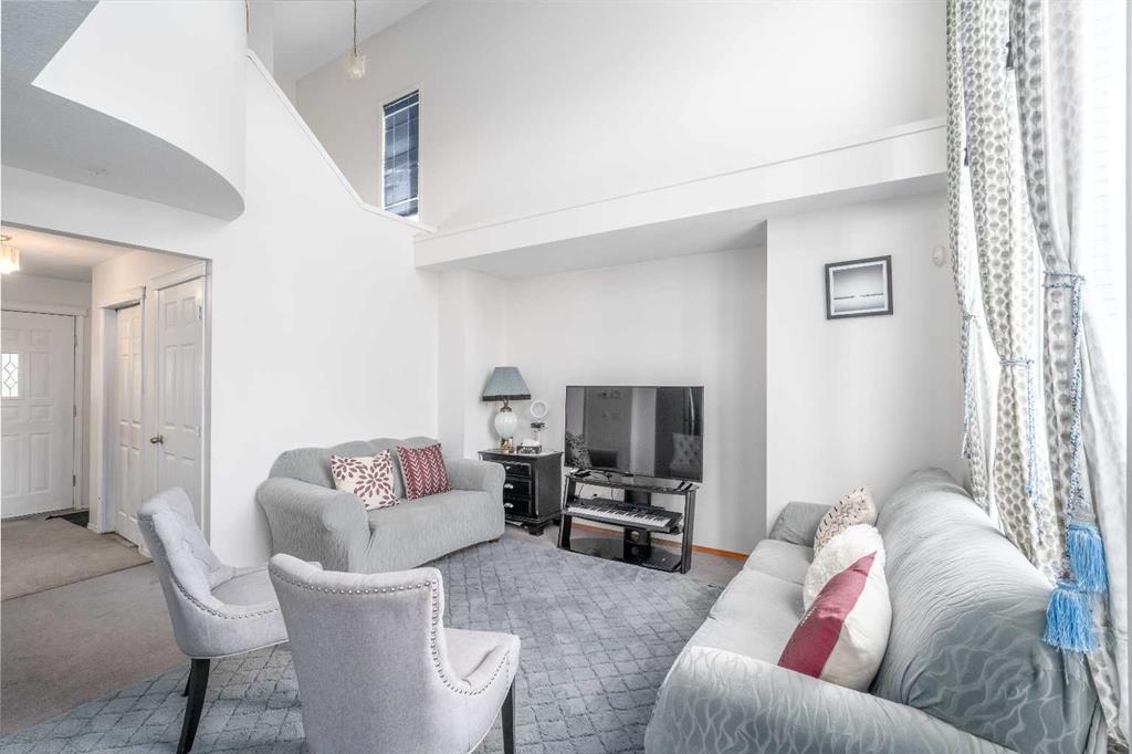 Public Remarks BACK ON MARKET DUE TO FINANCING. Welcome to this immaculate 4-bedroom, 2.5-bathroom residence where contemporary comfort meets multicultural charm. Step inside to discover dramatic vaulted ceilings and arched windows that flood the interior with natural light. The modern white kitchen shines with stainless steel appliances and a welcoming breakfast bar, flowing seamlessly into an open-concept main floor. The thoughtfully designed living spaces feature a refined grey-and-white palette throughout, creating an atmosphere of sophisticated comfort. A spacious family room with soaring ceilings offers the perfect setting for gathering and entertaining. Updated bathrooms showcase quality oak vanities, while the home's exterior catches the eye with its distinctive cream and green trim complemented by mature evergreen trees. Perfectly positioned in the heart of Martindale, this home sits just steps from the Genesis Centre's recreation facilities and library. Families will appreciate the proximity to several excellent schools, including Manmeet Singh Bhullar School, Crossing Park School, Nelson Mandela School, and Light of Christ Catholic School. The location offers easy access to diverse dining along Martindale Boulevard, convenient CTrain service to downtown, and quick connections to Stoney Trail and the airport. The vibrant neighborhood pulses with year-round cultural events, active community life, and abundant parks and walking paths. Experience the perfect blend of modern living and community spirit in one of Calgary's most culturally dynamic neighborhoods. Move-in ready and waiting to welcome your family home. NOTE: 1) Just Installed New Hot Water Tank. 2)New siding and new shingles were installed in late 2021 as well as a new furnace motor.