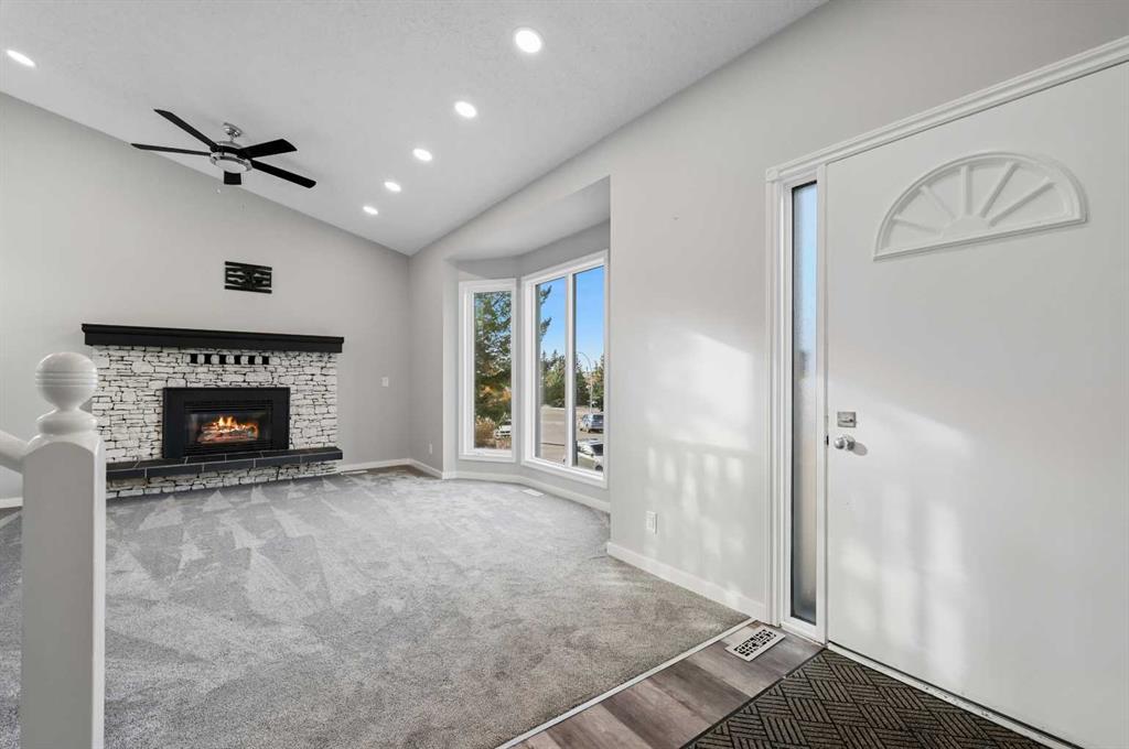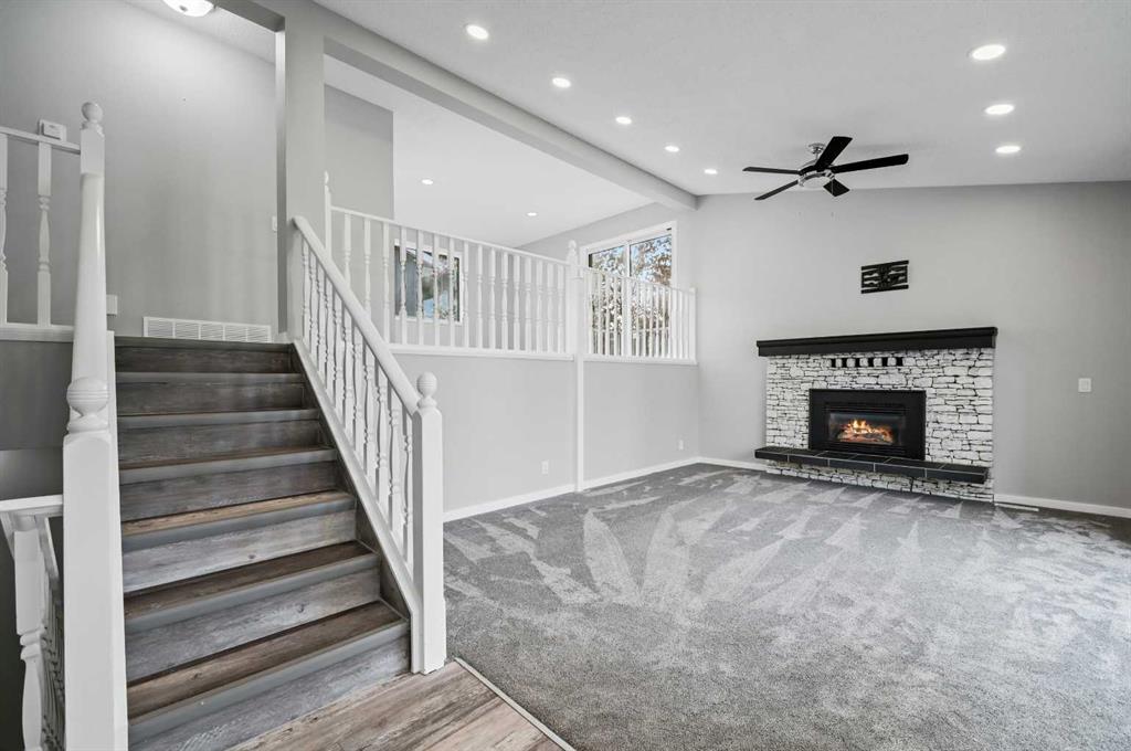 Welcome to this recently renovated 4-level split nestled on a desirable corner lot in the established, family-friendly community of Ranchlands Estates. This charming home offers a thoughtfully designed layout with modern upgrades throughout. The main level features a spacious kitchen equipped with new stainless steel appliances and vinyl plank flooring, seamlessly flowing into a cozy living room warmed by a gas fireplace – perfect for family gatherings. The upper level boasts a versatile bonus room, two generously sized bedrooms, and a 4-piece bathroom. The lower levels provide two additional bedrooms, two bathrooms, and a spacious recreation room, ideal for a growing family or entertaining guests. The oversized heated double attached garage offers ample storage and parking. With its prime location and impressive upgrades, this property is the perfect blend of comfort and convenience. Don't miss the opportunity to make this beautiful home yours!