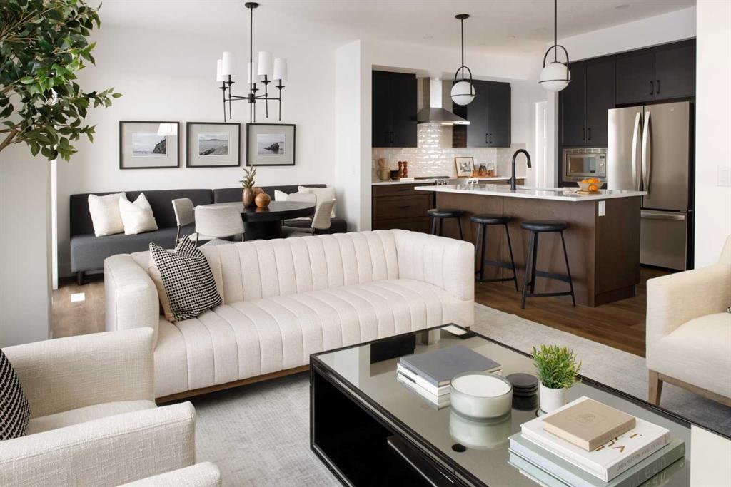 Discover the "Carisa" by Hopewell Residential in Rangeview – Where Every Detail is Designed with You in Mind! Step into the Carisa, a home that harmonizes style, convenience, and functionality, tailored to meet the needs of today’s families at an attainable price point. Thoughtfully designed from top to bottom, this residence is perfect for those who value a home that works with their lifestyle. As you enter, you'll be greeted by the open-concept kitchen that seamlessly blends with the dining and lifestyle areas, creating a bright, inviting space ideal for gatherings and everyday life. With a desirable west-facing backyard, natural light floods these rooms, bathing them in warm sunlight throughout the day. The kitchen is a true highlight, featuring stylish pot lights, a built-in microwave, a chimney hood fan, and carefully chosen finishes that balance both form and function. This is a space designed not only for cooking but for creating memories, with ample room for cooking, entertaining, and enjoying. The oversized pantry off the kitchen is a bonus for those who need extra storage space. The upper floor continues to impress with a well-located entertainment room that can flex as a family movie hub, play area, or cozy reading nook. Just steps away, the upper-floor laundry room is perfectly situated close to all bedrooms, bringing added convenience to the heart of daily routines. The spacious primary suite is a retreat within the home, offering a luxurious ensuite with carefully curated finishes to provide a serene start and end to your day. Completing this exceptional home is the 9-foot foundation, setting the stage for future basement development. The secondary entrance further enhances the potential, offering flexibility for an in-law suite, guest space, or additional living area down the line(A secondary suite would be subject to approval and permitting by the city/municipality). With a balance of quality features, thoughtful layout, and future development potential, the Carisa in Rangeview is a home where value, comfort, and possibilities come together. Start your journey here and discover the lifestyle you’ve been looking for. Located in Calgary's southeast, Rangeview is a unique master-planned community where life centers around food, sustainability, and connection. Known as Calgary's first "Garden-to-Table" neighborhood, Rangeview is designed to foster community interaction with shared gardens, orchards, and seasonal food festivals that celebrate local agriculture. Scenic pathways, wetlands, and gathering spaces bring residents together in nature while promoting a vibrant, socially connected environment. Situated near Seton’s urban amenities—including the South Health Campus, YMCA, and a variety of shops and dining options—Rangeview truly offers a balanced lifestyle, making it an ideal place to put down roots. **Photos are from the show home/previous builds to demonstrate quality of construction & finishes and may not be an exact representation of this home**
