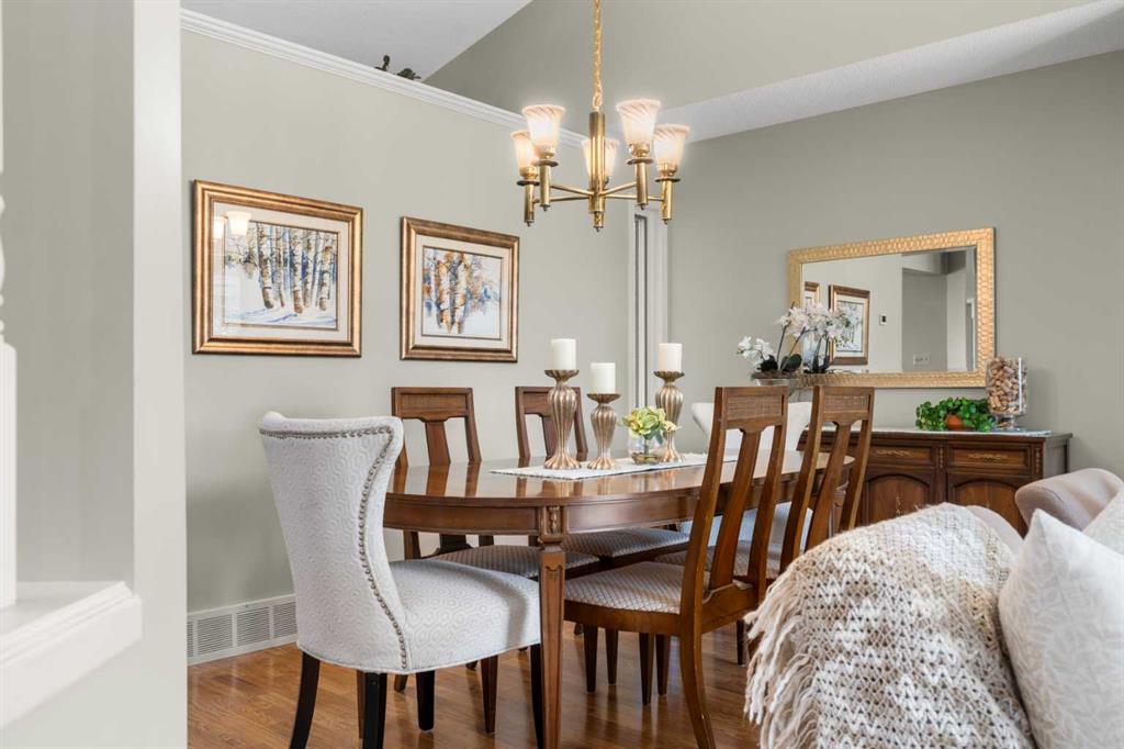 View VIRTUAL TOUR!!! Exceptional one owner family home in the heart of MacEwan Glen, moments to Nose Hill Park, schools, transit, close to airport and Stoney Trail......located on a quiet Close, next to community walk path and green space behind.....open floorplan on main includes living/dining area, private main floor office, family room with wood burning fireplace, renovated white kitchen with granite counters, new backsplash, large pantry, powder room, main floor laundry, big eating nook....opens to large upper deck overlooking beautiful mature trees and landscaping......upper floor features generous primary bedroom, ensuite bath, walk-in closet, 2 other bedrooms, main bath.....floors are hardwood and newer vinyl thoughout! Many other updates include doors, windows, deck renovations, updated exterior, interior and fence painting, Lower walkout basement is fully finished with rec room, family room with gas fireplace, bedroom, full bath and tons of storage! Large double attached garage is insulated, drywalled and heated....newer garage door. Private yard large lower patio, stairs up to upper deck, garden shed, cute fish pond with fountain.....gorgeous low maintenance landscaping! Too many features to list......it's just what you ordered for your new family in one of Calgary's premiere NW communities....check it out!