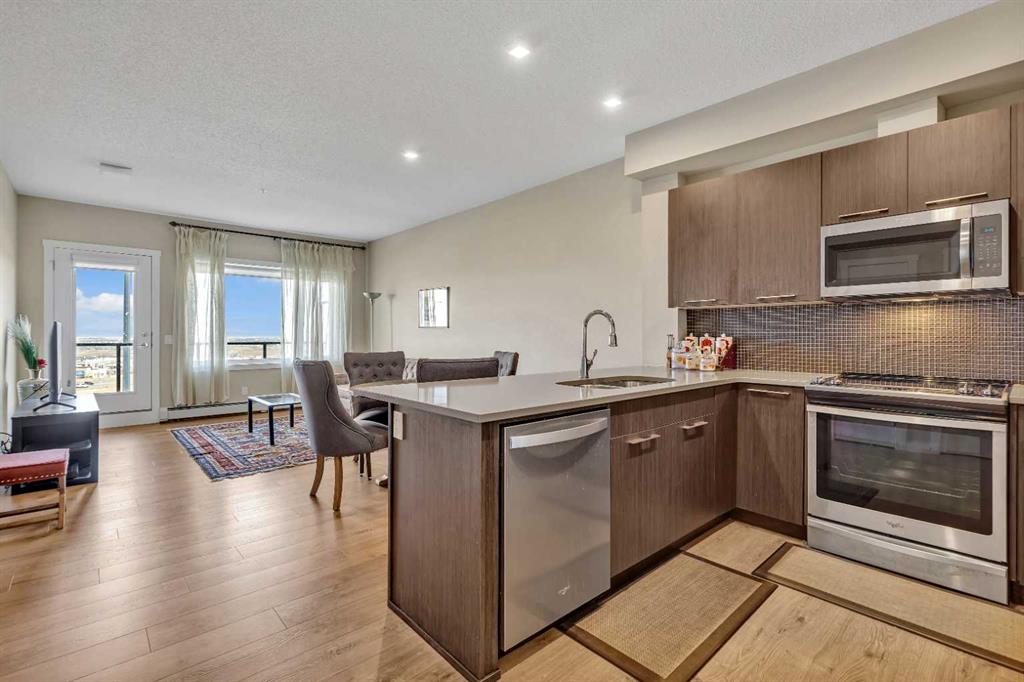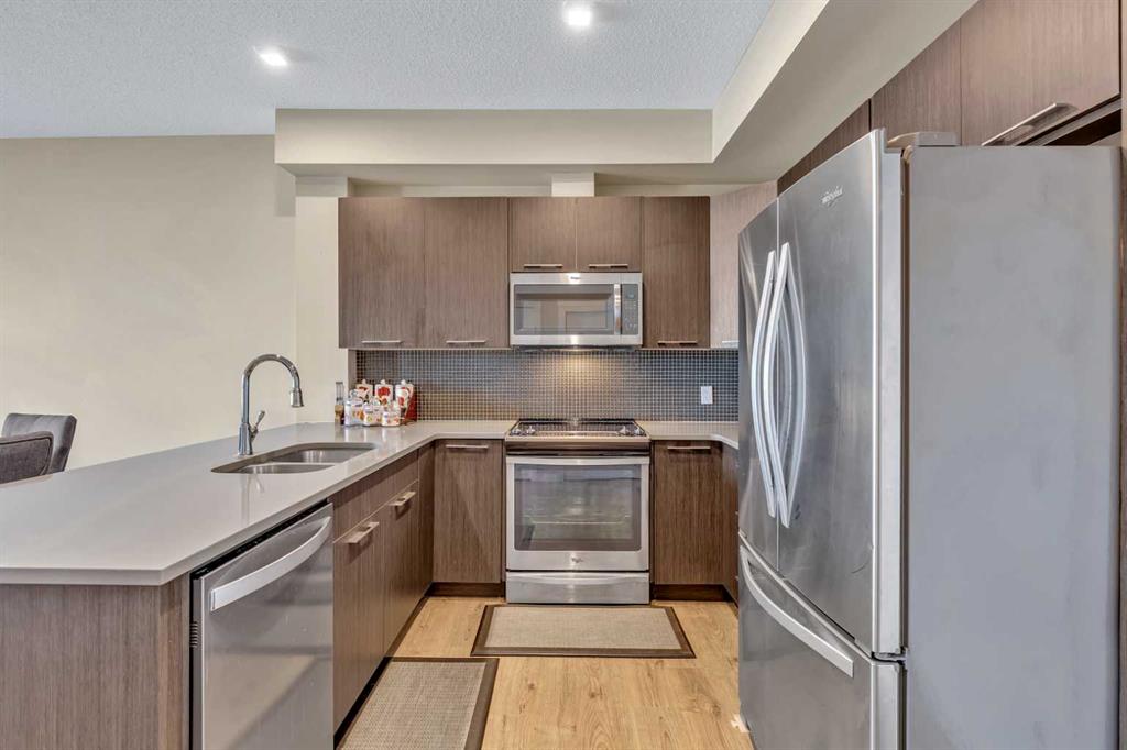 Welcome to this stunning, like-new 2-bedroom condo, offering modern sophistication and a carefree lifestyle in the heart of Sherwood! Located just steps away from Sage Hill Plaza, this property provides effortless access to a wide range of amenities, including Walmart, T&T Supermarket, Co-op, and countless dining options. Nestled beside a picturesque park with a serene pond and scenic pathways, this location promotes peaceful evening walks and a serene escape. Step inside and be greeted by an open and airy floor plan, beautifully accented by wide plank laminate flooring, soaring 9' ceilings, and a calming neutral palette. The thoughtfully designed kitchen, complete with sleek quartz countertops, stainless steel appliances, and ample cabinetry, is perfect for hosting and entertaining. Its open concept flows seamlessly into the sunlit living room, where oversized windows bathe the space in natural light. Step out onto the spacious balcony, outfitted with a gas line for weekend barbecues and quiet relaxation. The primary bedroom offers a peaceful retreat with a walk-through closet providing cheater access to a stylish 4-piece bathroom. A second bedroom, in-suite laundry with generous storage, and underground titled parking add to the convenience of this exceptional home. This condo is ideally located within the desirable community of Sherwood, surrounded by numerous golf courses, parks, and shopping destinations such as Costco and Beacon Hill Shopping Centre. Plus, easy access to major routes like Stoney Trail and Shaganappi Trail makes commuting a breeze. Don’t miss the opportunity to own this perfect blend of beauty, function, and convenience in an unbeatable location!