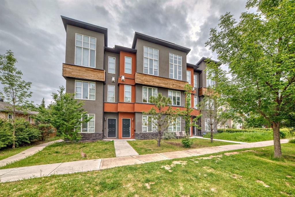 BACK on MARKET. Located in the picturesque and highly desirable community of Killarney, this stunning 1,375.5 sqft townhome combines modern elegance with thoughtful design. Killarney is renowned for its welcoming neighbourhood feel, beautiful parks, and convenient access to top-rated schools, shopping, and dining options, making it an ideal location for families and professionals. On the main level, you'll find a bright and spacious living room with enormous windows that fill the space with natural light, complemented by a cozy gas fireplace. Perfect for family meals and entertaining, the dining room offers ample space for gatherings. The gourmet kitchen features stainless steel appliances, a central island, quartz countertops, and a built-in dishwasher. Additionally, this level includes a convenient 2-piece bathroom and extends to a charming balcony, perfect for enjoying your morning coffee. Upstairs, the townhome offers two luxurious bedrooms, each with its own 4-piece ensuite and spacious walk-in closet. The primary bedroom is a serene retreat with a high vaulted ceiling and large windows that invite ample natural light. A conveniently located laundry room on this level adds to the home's functional design. The lower level features a versatile hobby room, perfect for a home gym, office, or creative space, and provides access to the attached single-car garage. The townhome is also equipped with built-in speakers throughout. Experience the perfect blend of style, comfort, and convenience in this beautiful townhome. Don't miss the opportunity to make this exceptional property your new home.