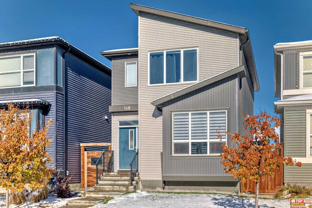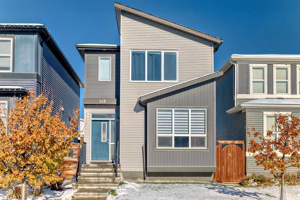 Welcome to this gorgeous 2-storey residence located within the vibrant well sought after community of Livingston. As you step inside, you will be greeted by an abundance of windows, natural light just beaming in, the entire home is spacious and inviting for entertaining or fully functionable for your growing family. The open concept floor plan connects the living, dining, and kitchen. Upstairs you will find three bedrooms, two full bathrooms, walk in closet, lots of storage and a laundry room, Downstairs you will find a lovely developed space, one bedroom and a full bathroom, wet bar and a wall of custom built cabinets, would work well as a man cave, great space for guests or a mother in-law. Fully fenced in back-yard with a beautiful deck, low maintenance landscaping that leads to an oversized double detached garage, 2x6 insulated walls, 10 ft ceilings, 8 ft door, attic trusses for tons of storage, and a calcana radiant gas heater. There are so many amazing features this community has to offer. With quick access to both Stoney Trail and Deerfoot. Come check it out and fall in love with the home and community.