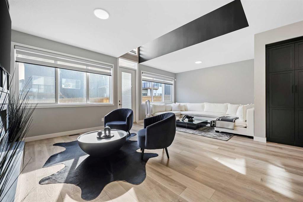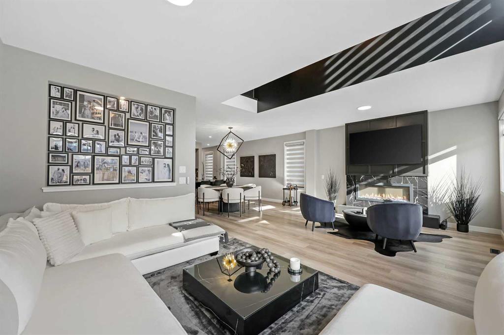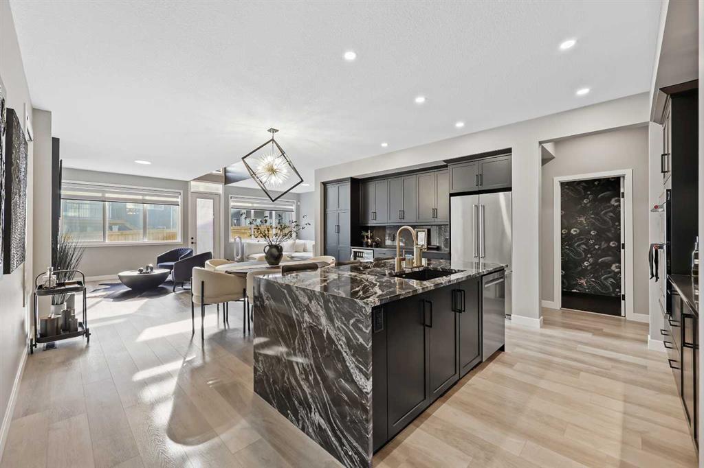 Welcome to this immaculate Jayman BUILT home in the desirable new community of Glacier Ridge, Calgary. This a true custom masterpiece of modern design and functionality with over $70,000 in upgrades. This property boasts luxurious, smart-living features, including Bluetooth-enabled smart lighting, a secure smart lock system, and a top-tier Honeywell A1 security system, which is transferable. The gourmet kitchen shines with a striking waterfall marbled island, upgraded high-end built in stainless appliances, a hidden walk-through pantry, custom dark cabinetry, and a pot filler above the range, while the cozy living area centers around a sleek, marble-clad fireplace with an open to above feature ensuring your space feels grand and eye-catching. Entertain in style with an elegant dining space featuring a stunning geometric chandelier and seamless flow to the living room and fireplace lounge area. Additional upgrades include solar panels for energy efficiency and a fully finished epoxy-coated garage, as well as upgraded light fixtures through out the entire home, upgraded glass stair railings, and oversized walk-in closets in every room. Every detail has been meticulously curated by Jayman, from the bold wallpapered powder room with custom brass finishes, to the hidden pantry and pristine furnace cleaning. This home meets the highest standards, verified by three gold keys on inspection for pristine filters and air quality. With both style and technology seamlessly integrated, this home is move-in ready for those who appreciate refined living and peace of mind.