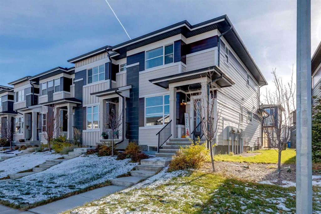 *MASSIVE PRICE REDUCTION!!* Welcome to this spacious and beautifully finished end-unit townhouse, located in the vibrant community of Skyview Ranch and offering exceptional features without the burden of condo fees! Step inside and experience a thoughtfully designed open-concept floor plan, with a versatile flex room that’s perfect for a study space, home office, or cozy den. This space caters to today’s lifestyle, providing both functionality and comfort. The heart of this home is the stunning kitchen, complete with walk-in pantry, gleaming quartz countertops, a massive island ideal for meal prep and gathering, and ample cabinetry. The adjacent dining area flows seamlessly into a spacious living room, creating a warm and inviting space for entertaining friends and family. Upstairs, retreat to the luxurious primary suite, featuring a 4-piece ensuite bathroom and a generous walk-in closet. This level is completed by two additional bright and airy bedrooms, a conveniently located laundry room, and a well-appointed shared bathroom, ensuring comfort and privacy for everyone. The fully finished basement offers even more versatile living space, featuring an expansive recreation room with plumbing rough-ins - perfect for future development. An additional bedroom and a 3-piece bathroom make this level ideal for hosting guests, accommodating a roommate, or multi-generational living. Outside, discover a low-maintenance backyard oasis. Sitting on one of the larger lot sizes in the complex, this outdoor space boasts a cozy patio with a privacy screen, creating a serene setting for relaxing or dining al fresco. The double detached garage is a standout feature, fully insulated and drywalled with a 60-amp electrical panel - ideal for EV charging. This unique townhouse offers exceptional living space, convenience, and privacy in a fantastic location. Located near a wide range of amenities - shopping, parks, schools, and dining - this home is also in close proximity to Stoney Trail & Deerfoot Trail, making commuting easy. Don’t miss the chance to make this wonderful property your new home!