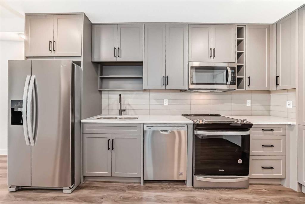 OPEN HOUSE SUNDAY NOVEMBER 10 TH. Rd. ; 12:30 to 3 :00 PM. Stunning LARGE Kitchen with Eating Area , STAINLESS STEEL APPLIANCES accented with QUARTZ COUNTER TOP and Floor to Ceiling TALL Cabinets PLUS Floor to Ceiling Pantry Cabinet ( TONS of STORAGE ) .En-Suite Laundry room with additional shelves . LARGE master bedroom with WALK-IN CLOSET .Bathroom with Wall to Wall Mirror and DEEP Soaker Tub. Livingroom with access door to WALL to WALL VERY LARGE COVERED BALCONY with AIR CONDITIONING UNIT positioned at one end for maximum utilization of space and gas hook-up for BBQ. LUXURY WIDE PLANK VINYL FLOORING .TITLED Energized Parking stall #53. Underground storage unit # 25. GRAND Foyer Entry with SEPARATE FULLY FURNISHED LOUNGE AREA with FIREPLACE (VERY NICE) and SEPARATE MAIL ROOM with RAISED BAR LEDGE . This property has 1 YR & 2 Yr & 5 Yr & 10 Yr . Warranty transferable to New Owner . (Covers a LOT of Stuff). LIVINGSTON COMMUNITY has Approx. a 35,000 sq . ft. homeowner's association area with 3 skating rinks, tennis courts, basketball court, gymnasium, splash park, and much more . This complex has easy access to Stony Trail RING ROAD . Very nice property inside and out .