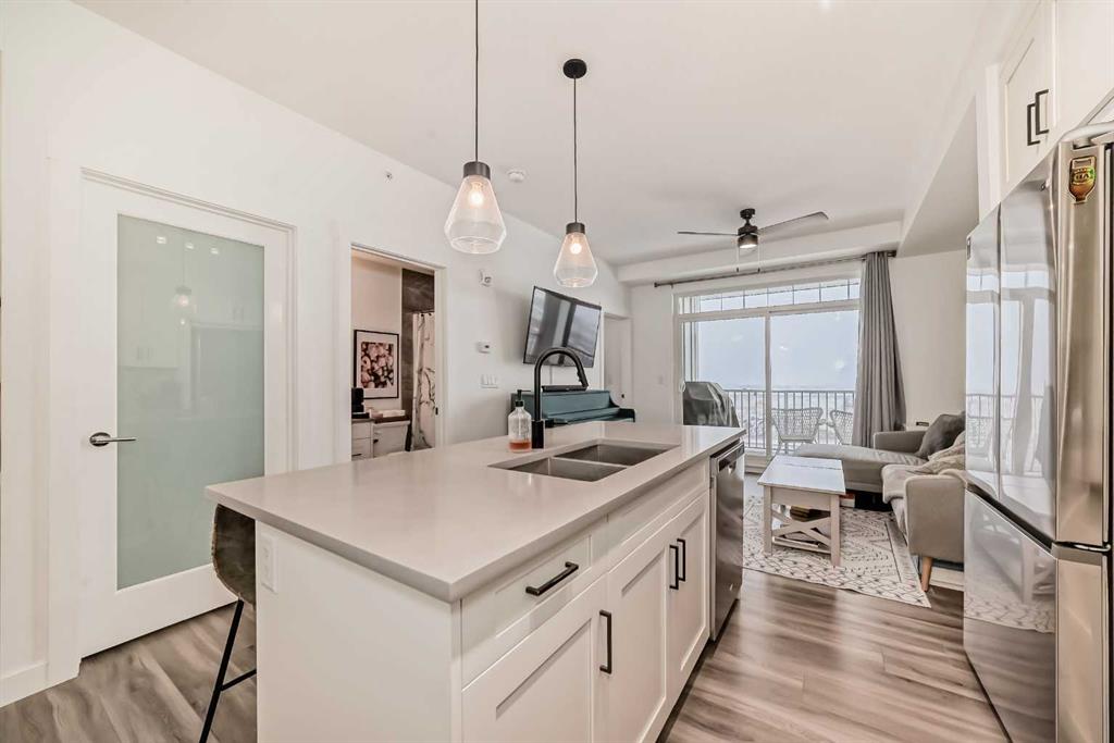 Welcome to this beautiful south facing -2-bedroom condo located on the top floor with only ONE common wall for added privacy and less noise. This unit offers a beautiful sunrise with an abundance of natural light. Pride of ownership is evident throughout, well taken care of with upgrades makes this one stand out. Enjoy access to the Lake, perfect for summer relaxation and recreational activities. This condo includes titled underground parking with additional storage, providing convenience and security. Situated close to essential amenities and South Health Campus. Ideal location for both comfort and accessibility!
