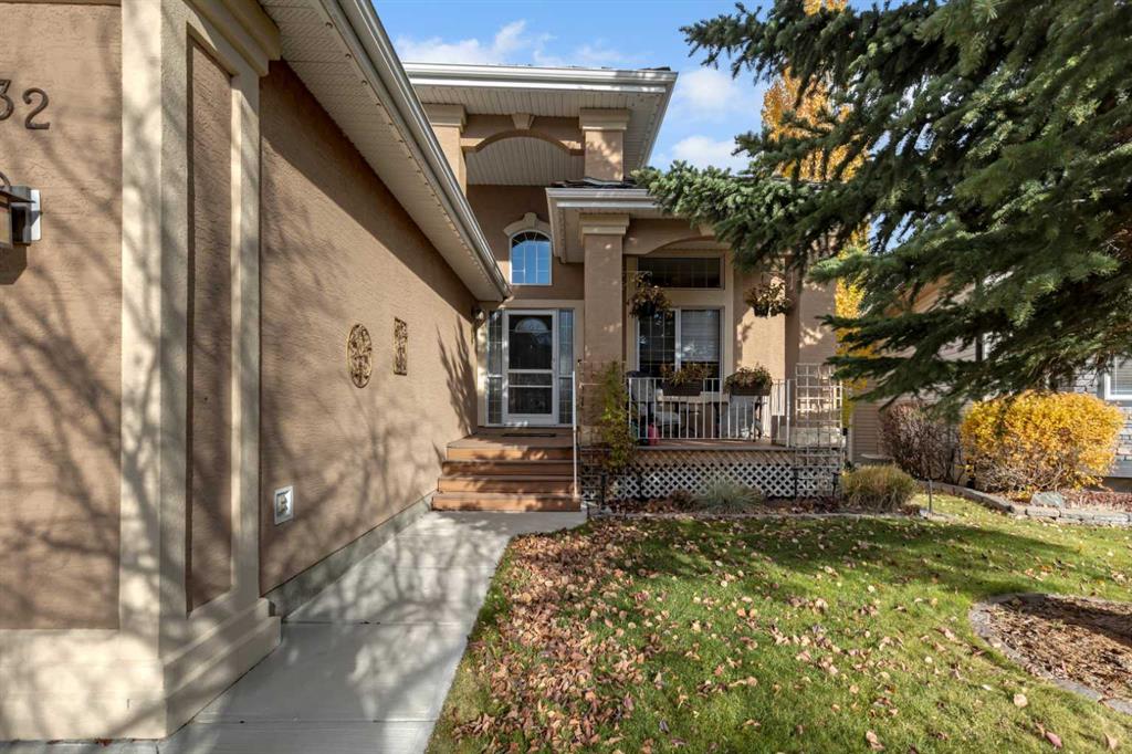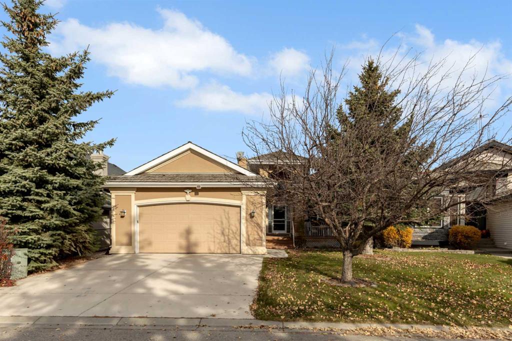 Nestled on a peaceful cul-de-sac that backs onto the Valley Ridge Golf Course, you will find an impressive air conditioned 1,735 sq ft walk-out bungalow. This home boasts fantastic curb appeal, featuring a charming front porch with seating, a grand entryway with vaulted ceilings, and intricate trim that flows into the open concept living room, kitchen, and dining area. Entertaining is effortless in the spacious kitchen, complete with a large center island, granite countertops, stainless steel appliances, and easy access to a generous deck that offers stunning views of the golf course. The bright breakfast nook, with its expansive windows, provides plenty of space for family gatherings. The living room is highlighted by wall-to-wall built-ins and a centrally located fireplace. You'll appreciate the convenience of a main floor office or bedroom, depending on your needs, along with a two-piece bath, a mudroom, and laundry facilities. The oversized master suite features a luxurious five-piece ensuite and a walk-in closet. The lower level is fully developed, offering two large bedrooms, each with walk-in closets and their own bathrooms, along with a third bedroom. The spacious family room is perfect for entertaining and provides access to a covered patio and a beautifully landscaped yard, complete with underground sprinklers, overlooking the lush golf course. Recent improvements feature: new blinds, ceramic flooring on the main level, updated kitchen cabinets, a new fridge, a dishwasher, carpeting in the basement, and outdoor Gemstone lighting. Situated just 20 minutes from downtown and with quick access to the mountains, Valley Ridge boasts over 50% green space, featuring bike paths that meander through the environmental reserve, leading to Bowness Park and beyond.
