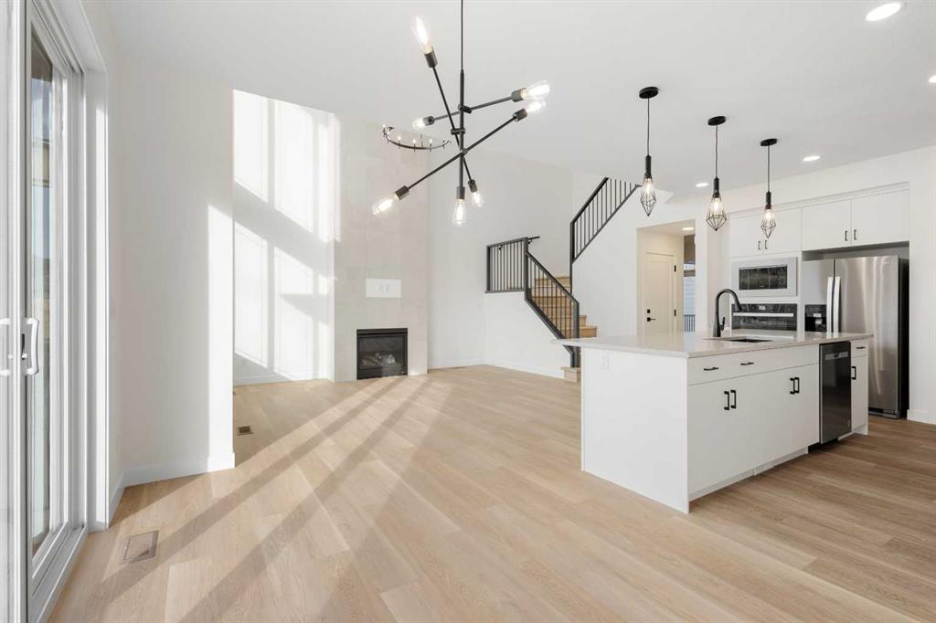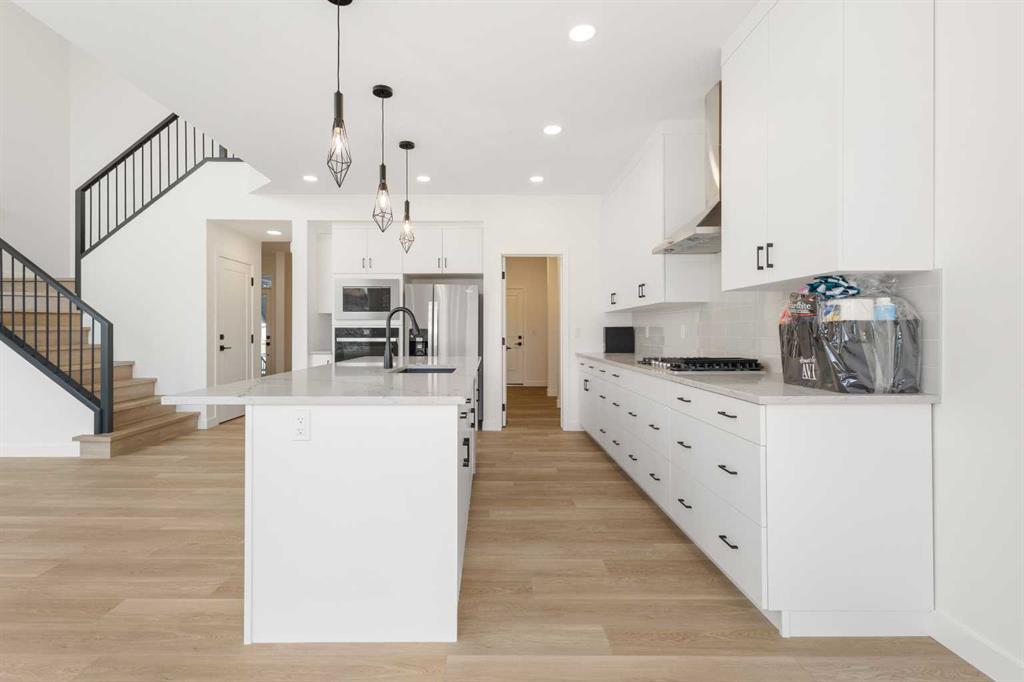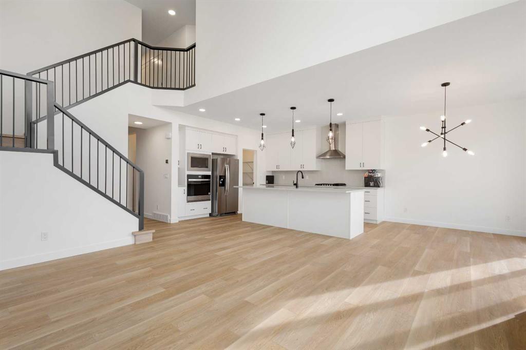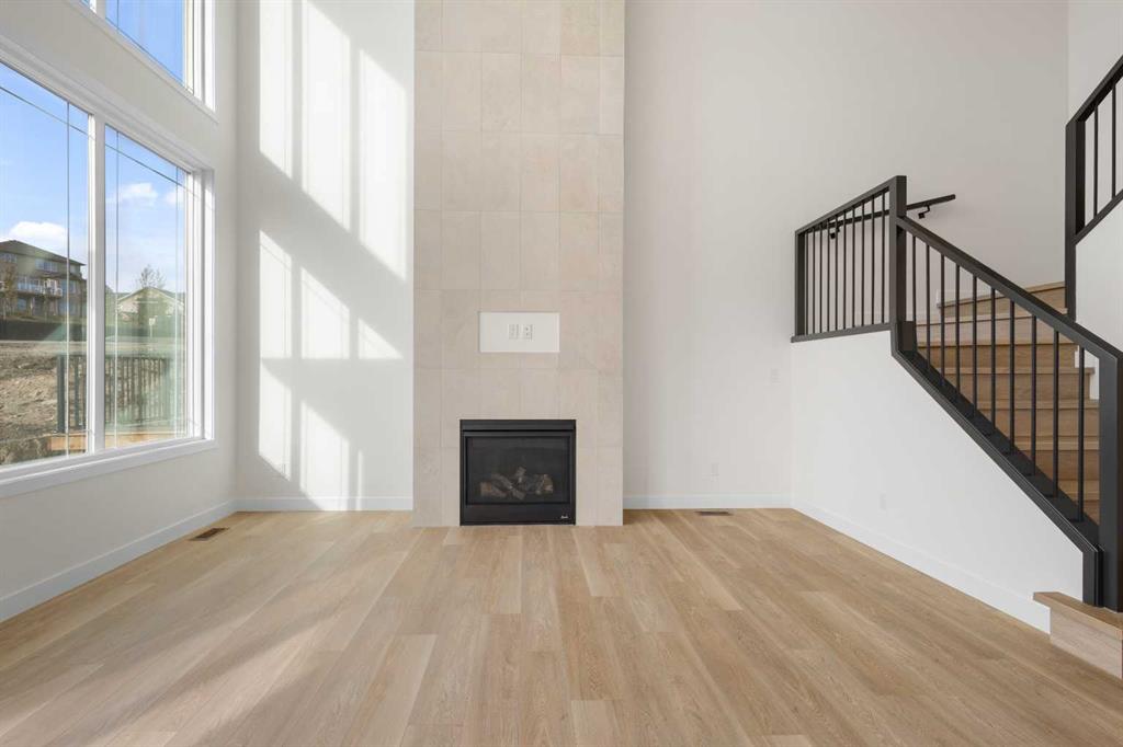OPEN HOUSE 1-3pm Sunday Nov 3rd. Nestled in prestigious Aspen Spring Estates, this brand new home offers 3000 sqft living space with perfect combination of modern and functionality. The exceptional open-concept main floor offers a spacious flex room, open to above living room, bright dining area, gourmet kitchen and 2 pc powder room. The expensive floor to ceiling windows provide plenty of natural sunlight. The main floor is covered with trendy luxury vinyl plank flooring throughout. The chef's kitchen complete with stainless steel appliances, gas cooktop, chimney hood fan, large upgraded quartz contertops, and a convenient walk-through pantry. Plenty of space for hosting gatherings with friends and family. The spacious breakfast nook has easy access to the west-facing deck and backyard without nighbour behind. The upper level offers a master bedroom with walk-in closet & 5 pc ensuite, additional two bedrooms, a shared main bathroom, front facing bonus room and laundry room. The legal suite basment features additional bedroom, living room, full bathroom and second kitchen. Just minutes away from the aspen landing shopping centre, transit and LRT, top ranked schools, parks, and pathways with great access to the mountains. The new home warranty offers new owner peace of mind!