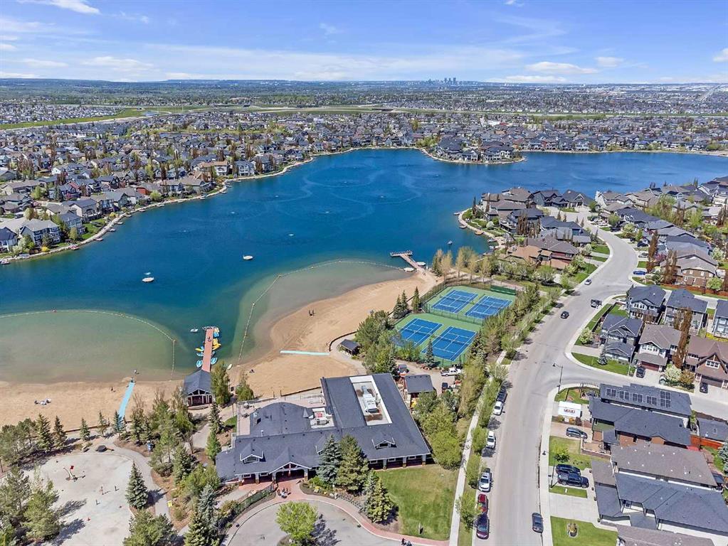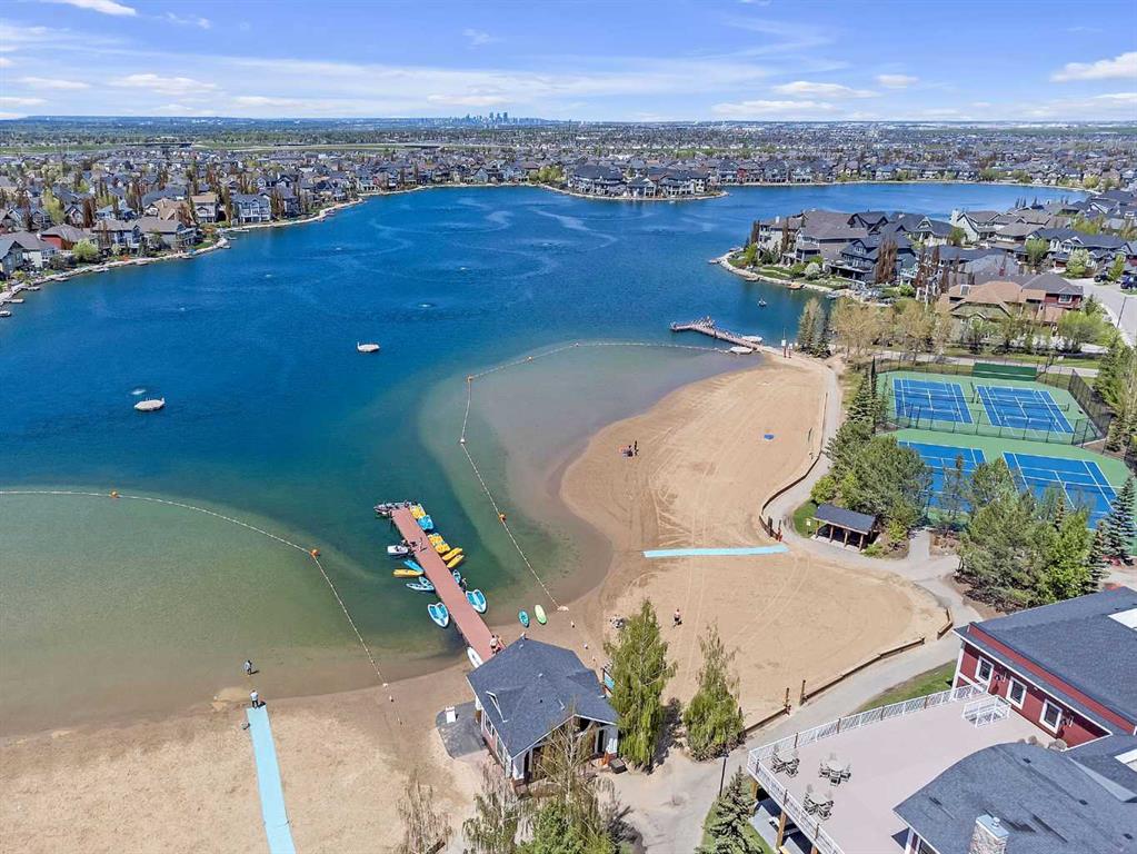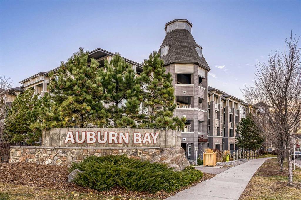 Welcome to the ultimate lake community, Auburn Bay! This beautifully refreshed 1-bedroom, 1-bath condo on the TOP FLOOR features a bright, open-concept layout, perfect for modern living and entertaining. The well-appointed kitchen is thoughtfully designed with stylish quartz countertops, stainless steel appliances, and a breakfast bar—ideal for casual dining or hosting friends. There's room for a more formal dining area and also a great study nook space, perfect for a computer desk. Bright, large windows bathe the living space in natural light, showcasing beautiful hardwood flooring and a roomy living room that steps out onto a balcony with scenic mountain views and a tranquil greenspace right across the street. The spacious primary bedroom (large enough to fit a king-size bed) is bright and airy and flows into a walk-through closet for ample storage and a four-piece bath with quartz vanity. The convenient in-suite laundry has also been recently updated with LVP flooring. This unit stands out with a fresh coat of paint and quality finishings throughout. Quick access to both Stoney Trail and Deerfoot Trail, as well as numerous bus routes nearby, commuting is a breeze. Situated within walking distance to an array of amenities, enjoy the convenience of nearby shops, dining, and services, plus exclusive lake access. Complete with a titled underground parking stall and assigned storage, this condo offers the perfect blend of luxury, convenience, and a lock-and-leave lifestyle. Enjoy nearby grocers, YMCA (arena/pool/recreation facility), South Campus Hospital, numerous biking/running pathways, and a nearby off-leash dog park - you can bring your FUR BABY along as building has no weight restrictions (Board Approval Required). This top floor unit means NO NEIGHBORS above you. Don’t miss this unique opportunity in Auburn Bay!