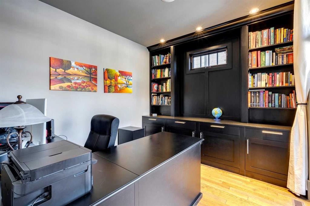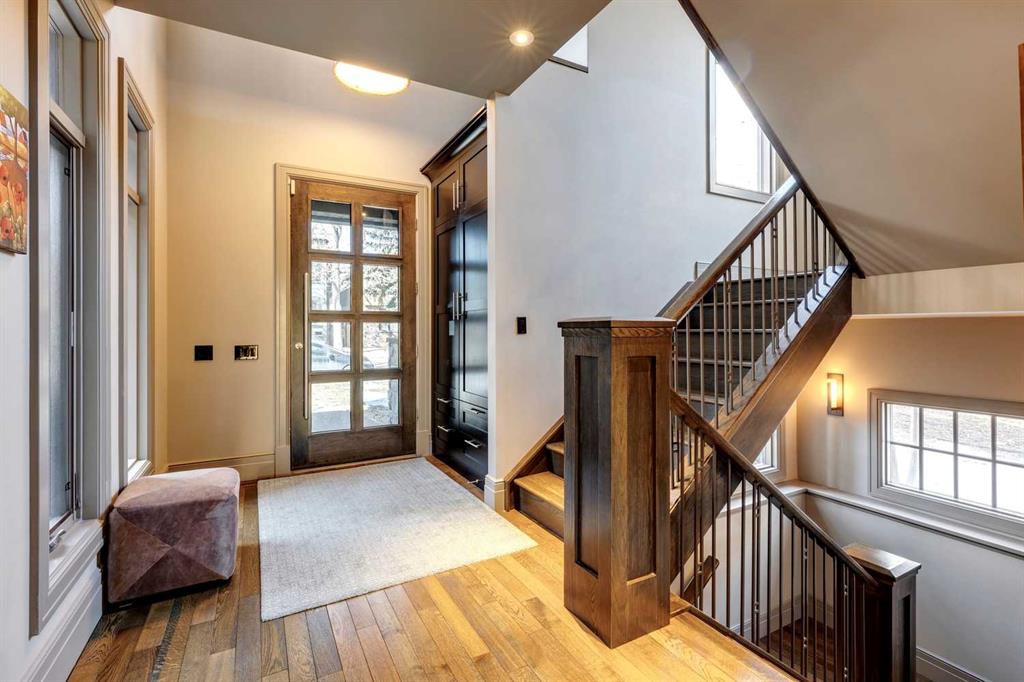 This stunning custom executive home in Parkdale’s Golden Triangle epitomizes stylish luxury. Exterior wood and stone accents immediately evoke a country manor house. A glass inset front door brings the light in with you. Inside, hardwood floors add a rustic elegance to the main floor, and cove lighting brings a sense of grandeur to the front hall. A home office with transom windows, floor-to-ceiling built-ins, and a private patio elevate the work-from-home experience. In the dining room, coffered ceilings create the perfect setting. The kitchen is a gourmet masterpiece, with luxe espresso cabinetry and granite counters. A tiered island offers a second sink and an eat-up bar. A custom hood fan over a Viking gas range and a wall oven is ready for culinary adventures – stock up on fresh ingredients in the Subzero refrigerator. At the heart of the living room, a wood-burning Rockefeller-style fireplace is an exquisite focal point. Sliding French patio doors and more transom windows bring in tons of natural light. The back entry provides a custom closet, hanging space, and a bench. A powder room off the hall completes this level. Upstairs, a sumptuous primary bedroom is a one-of-a-kind retreat. Custom vaulted ceilings and a gas fireplace infuse a unique ambiance. The walk-in closet has elaborate organizers, including a jewelry lightbox. A decadent ensuite begs you to indulge. Dual floating vanities and a separate wash closet are the ultimate couple’s layout, and the stunning tiled shower features four body spray jets. The soaker tub in the centre of the room is both art and function, with accent lighting and a rainfall shower. This storey has two more generous bedrooms, and the main bath is well-appointed. Downstairs, an epic basement was made for entertaining. A two-sided limestone fireplace divides the games area from the ultimate home theatre, complete with built-in speakers. In fact, there are speakers all throughout the house. A wet bar is equipped with a fridge, sink, and dishwasher. There is also a wine cellar. Another large bedroom is ideal for overnight guests, and the bathroom has a phenomenal steam shower with a bench and body jets. You will also find the laundry room here. Outside, a tiered patio offers options for outdoor living, and the lawn is great for kids and pets to play. Mature trees edge the fence, and garden beds add colour. An oversized double detached garage provides off-street parking and a place for your toys. Set just a block to the river and 10 minutes to downtown by car or cycle, this area is one of the hottest in Calgary. With miles of river pathways at your door, you can walk, run, or bike to your heart’s content. Foothills and the Children's Hospital are nearby, as are shops and restaurants in trendy Kensington. Plus, iconic local favourites, like the Lazy Loaf and Kettle and LICS Ice Cream, are within walking distance. Or, hop on Highway One and be out of town headed to the mountains in just minutes. See it today!