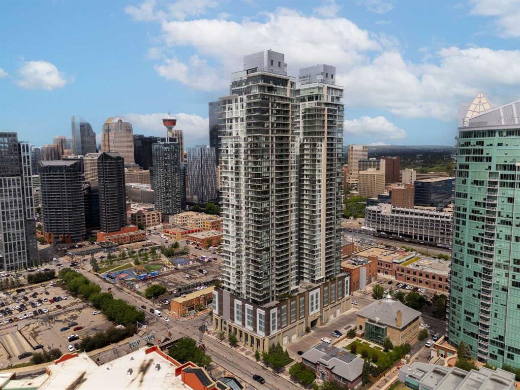 Discover this luxurious 2-bedroom, 2-bathroom condo in the prestigious Guardian South II tower, offering breathtaking panoramic views of the Stampede Grounds, Saddledome, the new BMO Centre, and the Elbow River. Imagine enjoying uninterrupted vistas of dazzling Stampede fireworks from your private space, ideal for hosting gatherings or relaxing after a long day against Calgary’s stunning skyline. This high-rise gem is perfect for homeowners and investors alike, featuring an open-concept living space with floor-to-ceiling windows, a modern kitchen, and a private balcony. The master suite includes an ensuite bathroom, creating a serene retreat, while the second bedroom is perfect for guests or additional family members. Residents can enjoy premium amenities such as a state-of-the-art fitness center, a social lounge, and a 24-hour concierge service. The condo also includes a titled underground parking stall for added convenience. Located in Calgary’s vibrant core, you’re just steps away from the Central Library, Studio Bell, the trendy neighborhoods of Inglewood and East Village, and the bustling Downtown core. Enjoy the best dining, shopping, and entertainment that the city has to offer right at your doorstep. With its prime location and luxurious features, this property is also perfect for Airbnb, offering excellent rental potential. Don’t miss this rare opportunity to own a slice of urban luxury with stunning views and unbeatable proximity to Calgary's top attractions.