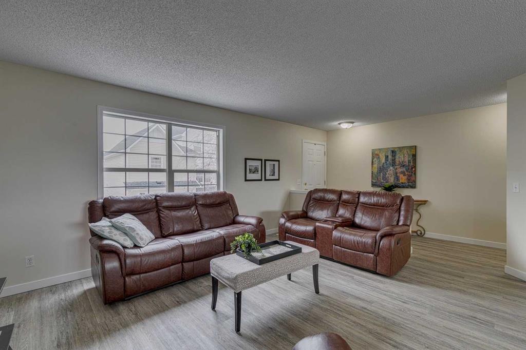 Fantastic opportunity to own an immaculate 3 bed 1.5 bath 1400 sqft townhouse unit with an exceptional open concept floor plan, oversized single garage and private fenced yard. Bright and sunny living space with newly installed vinyl plank floors and freshly painted walls. Large kitchen with modern, white cabinetry, an island and a large window overlooking the east facing yard. The king sized master bedroom has a huge walk in closet. Two other good sized bedrooms, four piece bath and a convenient loft area for office/flex space. The laundry room is located on the lower level and is in a large open area with plenty of extra storage space. There is lots of room to enjoy the backyard, fenced for privacy and perfect for any young ones you have running around. It’s also great for anyone with animals, since the complex is pet friendly with board approval. The single attached garage also includes a private driveway, perfect for parking a second vehicle. Well maintained complex with greenbelt and lots of convenient visitor parking. Within walking distance of schools, parks restaurants, public transit, scenic trails, ponds, summer splash park along with plenty of shopping and other amenities. Minutes from Deerfoot Trail and the new Ring Road System!