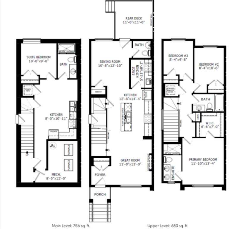 This beautifully crafted Linden model offers 4 bedrooms, 3.5 bathrooms, and 1,436 sq. ft. of thoughtfully designed living space, perfect for families or those who appreciate quality and style. The main floor features a chef-inspired kitchen with stainless steel appliances, a chimney hood fan, built-in microwave, upgraded undermount silgranit sink, and a water line to the fridge. Complemented by quartz countertops and luxury vinyl plank flooring throughout, the open-concept layout includes a spice kitchen and 9’ knockdown ceilings. Upstairs, the primary bedroom boasts a 4-piece ensuite with dual undermount sinks, a fully tiled shower with a bench, and a sliding glass door. The upper level includes additional bedrooms with ample space and natural light. The basement, with 9’ ceilings and a side entrance, features a 1-bedroom , ideal for guests. Outside, enjoy the 11’x11’ deck and privacy wall for outdoor gatherings or relaxing evenings. *Photos are representative.*