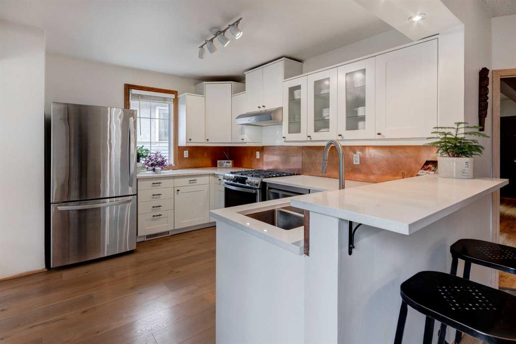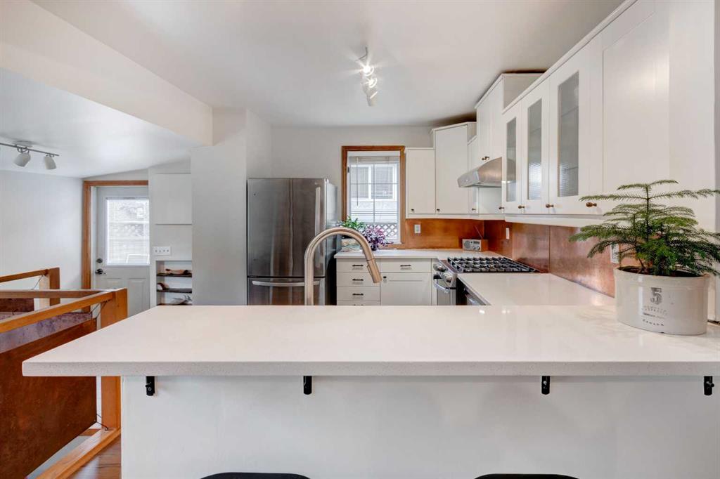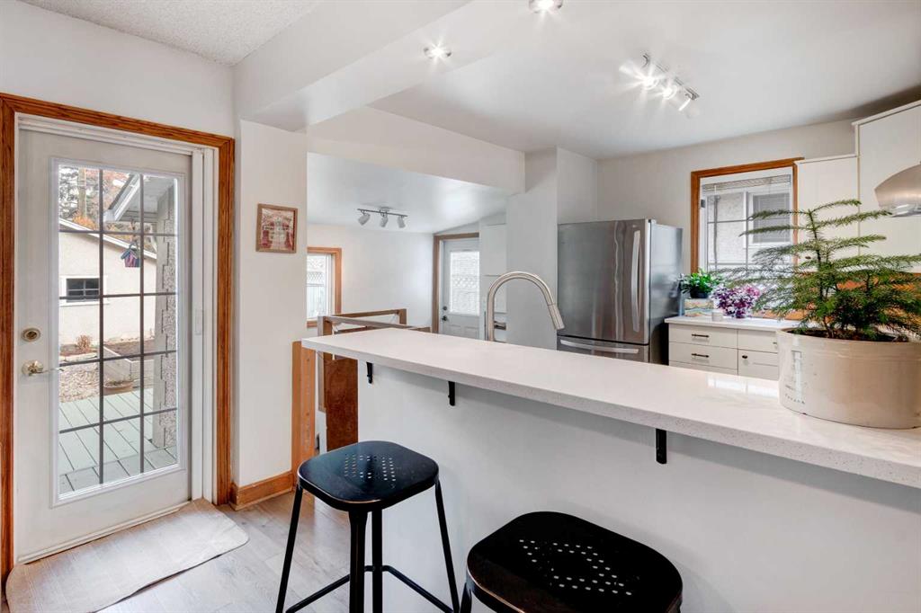 This charming 1930s bungalow, ideally situated in Capitol Hill, boasts a well-appointed layout and unique architectural features, creating a space you'll want to call home. The chef’s kitchen, equipped with stainless steel appliances, ample storage, copper backsplash, and quartz countertops, flows into the full-sized dining room, ideal for entertaining. The spacious living room fills with natural light, courtesy of the many windows, creating a bright and uplifting atmosphere. The primary bedroom, surrounded by windows and trees, offers a peaceful retreat. The 4 pc bathroom has been upgraded, including a new vanity, cement tile flooring, tile surround, and a deep soaker tub. The fully developed basement provides an additional living area with two bedrooms (non-egress windows), a full bathroom, a flex area, a storage room, and laundry. The south-facing backyard is a standout feature, with a large deck, a double detached garage, a fully fenced yard, a beautiful perennial garden, a water fountain, and mature pear and apple trees. Other features and upgrades include laminate flooring, newer appliances, interior and exterior paint, HE furnace, updated light and plumbing fixtures, a separate entrance, and a 37.5’ x 120’ lot size. Living here, you’ll be near all the local amenities like North Hill Mall, SAIT, Ctrain, U of C, and Confederation Park. Plus easy access to 14 St, John Laurie, and Trans Canada to get in-out-and-around the city. This house offers high quality and unparalleled convenience and is ready for you to call home.