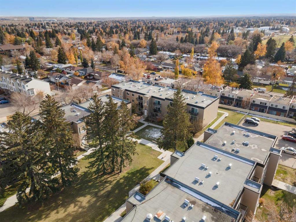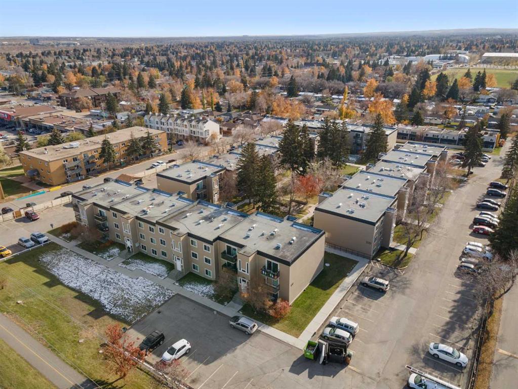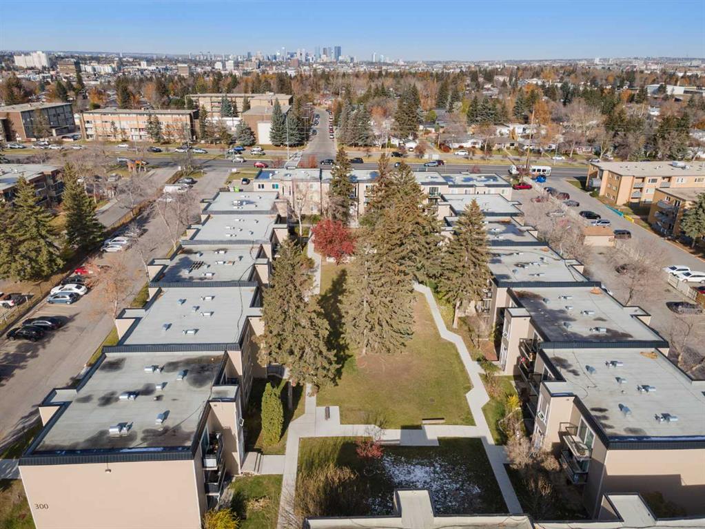 Top Floor Updated 2-Bedroom 2-Bathroom, 854 square foot Bungalow Apartment, in Village Green, Acadia - simply the BEST for affordable and access-friendly living. View the 3D iGuide Tour in the media link, with detailed Floor Plans, and professional photos - this home is a stunner! The unique complex is small and select, each of the 4 Buildings back and face pathways and green spaces, BUT Building D (400) has the furthest most private location by Visitor Parking, the lowest number of apartments/residents (6 per floor), AND it overlooks the exterior green belt with a Southern Balcony exposure. The unique Building and Unit layouts have TWO entry/exit doors (perfect for lives with different time schedules) and all the homes span from front to back across the structures, so there are North windows in the 2 Bedrooms, AND South patio doors to the Balcony - one "shared wall" is actually just the bathrooms(s). Further, the Bedrooms are totally separated from the Kitchen, full sized Dining and full-width Living Room, by Walk-in Closets for the Primary, Ensuite for the Primary, and a huge Storage Room that COULD be used as a small Den or Study/Homework space. NEW Luxury Vinyl Flooring has been installed in the majority of the property, with Tile in the 4-Piece Main Bathroom, Foyer Entry, and 2 piece Ensuite Bathroom. The room spaces are so huge between the Primary Bedroom and the Living Room, that the plan allows for an open-concept Media, Reading-Library AND Office Desk area in either location. The Dining can give added room for a 6+ foot sidebar (upper and lower cabinets, extra counter and/or pantry - dealer's choice!). The second Bedroom is big enough for a Queen sleeping set or other hobby/TV/personal use. There are so many possible functions for every part of this flexible plan it is obviously suited to any lifestyle need. The location cannot be beaten, close to all accesses, amenities, right beside a bus route and minutes to the C-Train line - directly beside Heritage Drive, between MacLeod and Blackfoot Trails to get easily to all the other main routes to anywhere in Calgary - fast! This beautiful home is waiting for its new Owner(s) so don't hesitate to request a showing from your agent! PS though Bylaws say no dogs, the Board WILL look at applications on case by case basis - yay!