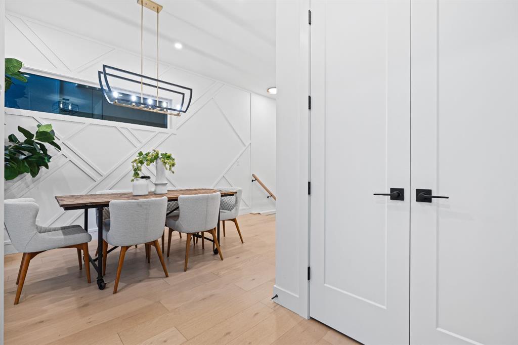 This exceptional new build showcases the highest quality finishes with meticulous attention to detail. Upon entering through the front entry into the foyer, you are immediately captivated by the grandeur of 10' ceilings spanning the main floor. The oversized dining area leads to a culinary masterpiece: a stunning kitchen featuring a 13' two-tier island with a waterfall, a quartz countertop and backsplash, pristine white floor-to-ceiling cabinets, and top-of-the-line gourmet appliances. Enjoy the luxury of a Built-in Jennair fridge, elegant Bosch gas range, and built-in microwave. The kitchen is equipped with stylish black Moen plumbing fixtures, a sophisticated reverse osmosis water system, a Kohler sink, under-cabinet lighting, a rough-in for toe kick central vacuum, and a garburator. The living room offers comfort and style with a custom-built Napoleon Gas fireplace with one-piece tile cladding. An 8-foot 4-panel sliding door seamlessly connects indoor and outdoor living spaces. The guest powder room features a designer sink with a custom gold faucet. Upstairs, the engineered hardwood floors and 10' ceilings create an airy, spacious feel. The large primary suite boasts a custom ensuite with a rain shower head, additional wall jets, in-floor heating, a freestanding tub, and a smart toilet. Two additional generously sized bedrooms, one with a walk-in closet, and a spacious laundry room with a sink complete the second floor. The fully finished basement offers 9' ceilings and hydronic in-floor heating rough-in. It includes a fourth bedroom, a flex room/gym with a full-height glass wall, and a rec room with a built-in bar and wine cooler. Enjoy the sunny SOUTH backyard. Additional features of this home include a central vacuum rough-in, speakers throughout the house, rough-ins for solar panels, EV charging in the garage, A/C rough-in, and security system rough-in. Located close to parks, trendy restaurants, bars, the Bow River, Downtown, the University of Calgary, SAIT, Children’s and Foothills Hospital, with convenient access to Memorial Drive and Crowchild Trail. Call today! The house is pending some final finishes.