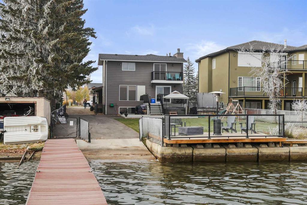 Welcome to a one-of-a-kind lakeside retreat in Chestermere, ideally located on the most coveted stretch of the lake, with the widest and deepest part of the water right at your doorstep. This 3-bedroom, 2-bathroom home combines unparalleled waterfront luxury with the opportunity to make it your own, offering exceptional flexibility for future expansion and customization. Imagine creating your dream kitchen—a spacious culinary oasis with breathtaking lake views, perfect for entertaining. The current layout allows for the kitchen to be expanded, giving you the freedom to design a true chef’s paradise that seamlessly flows into the main living area, making gatherings a breeze. The upper level of the home also presents an exciting opportunity. With ample space, there’s potential to convert the layout into three distinct bedrooms, allowing for added privacy, comfort, and versatility. Whether you envision a guest room, home office, or additional family bedrooms, this property offers the flexibility to suit your lifestyle and growing needs. Step outside to your private lakefront sanctuary, complete with a new boat launch, new dock, and new waterside deck for endless summer fun and relaxation. Two boat lifts and two sea-doo lifts make it easy to enjoy boating, swimming, and all the best of lake life, while winter transforms the lake into a wonderland of skating and snowshoeing. New patio doors open the space to creating a seamless flow between indoor elegance and outdoor splendor. Inside, a new roof, air conditioning, and new German light fixtures enhance the home’s comfort and modern appeal. Outside, a new fence and gates add privacy, while the oversized, heated triple-car garage offers ample storage for vehicles and lake toys. This home is not just a residence; it’s an opportunity to create your lakeside dream. With every modern convenience and space to customize, this Chestermere estate on the lake’s finest location is the ultimate blend of luxury, style, and possibility. Don’t miss the chance to make it yours! Note: New water line in 2022, new roof in 2022, new boat launch and pavement in 2022, new dock in 2023, air conditioning in 2024, new fence and gates in 2021, new patio doors in 2024, new carpet in 2021, and landscaping and waterside deck done in 2023.
