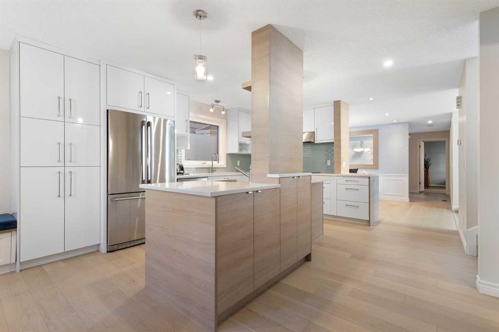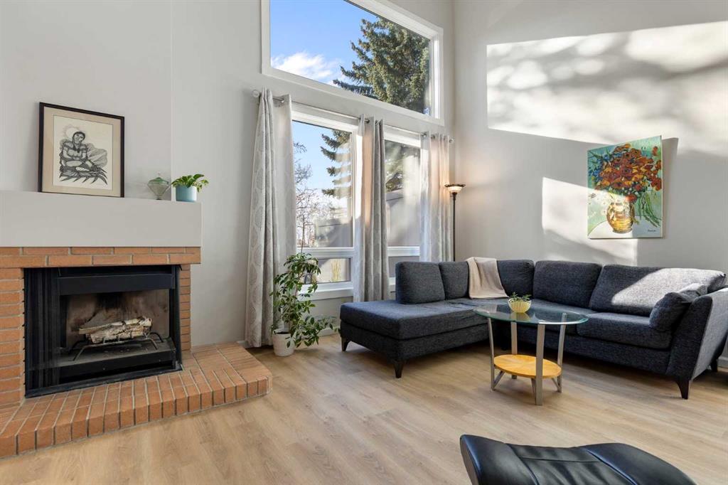 Public Remarks Bright RENOVATED 1.5 story END UNIT townhome with huge main floor master suite, south facing backyard, vaulted ceilings and DOUBLE ATTACHED garage. Updates include contemporary kitchen cabinets, quartz countertops, upgraded stainless steel appliances, designer glass tile backsplash, pot lights, engineered hardwood and luxury vinyl flooring. The spacious main floor master bedroom has an gorgeous spa like 4 pc en-suite with cozy in-floor heat and lots of closet space. To complete the main floor: Living room with floor to ceiling windows & wood burning fireplace, dining room with built-in, office/den, kitchen nook, 1/2 bathroom, laundry room and storage. Upstairs there is another large bedroom, full bathroom, loft flex space and more storage! The home has a high efficiency furnace & hot water tank installed in 2018, and newer vinyl windows. French doors lead to the sunny SOUTH facing deck and backyard. BUNGALOW style living in the sought after community of Woodlands near the community center, golf, recreation, shopping and Fish Creek Park. The Wood Meadows condo complex is pristine with lots of green space and very well taken care of.