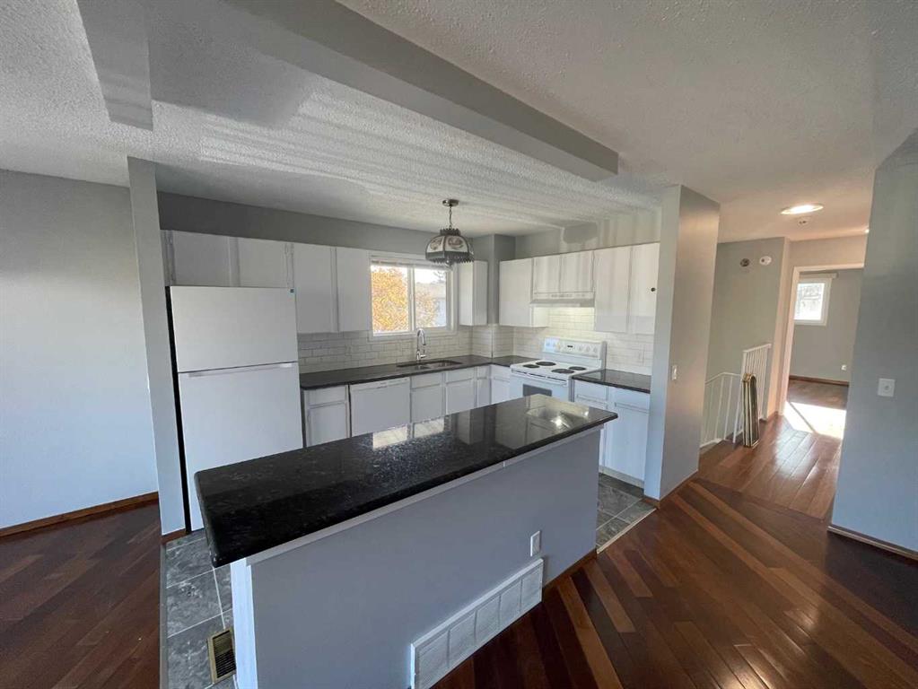 WOW! 4 bedrooms 2 full bathrooms over 1800 sq ft total developed area, Wall removed to open up the floorplan, 2 parking stalls, Wood burning fireplace,hardwood floors, new paint, new blinds, new kitchen floor, and a fantastic central location. Was rented for $1850 Vacant and ready for occupancy. Basement developed with 2 bedrooms, family room and 1-4 pce bathroom.