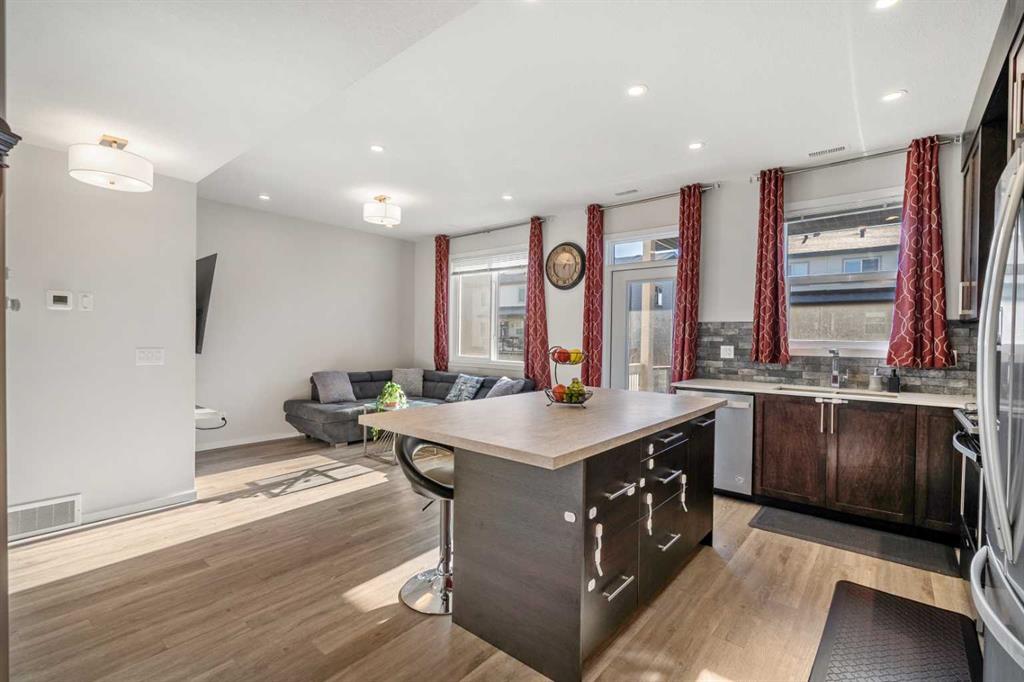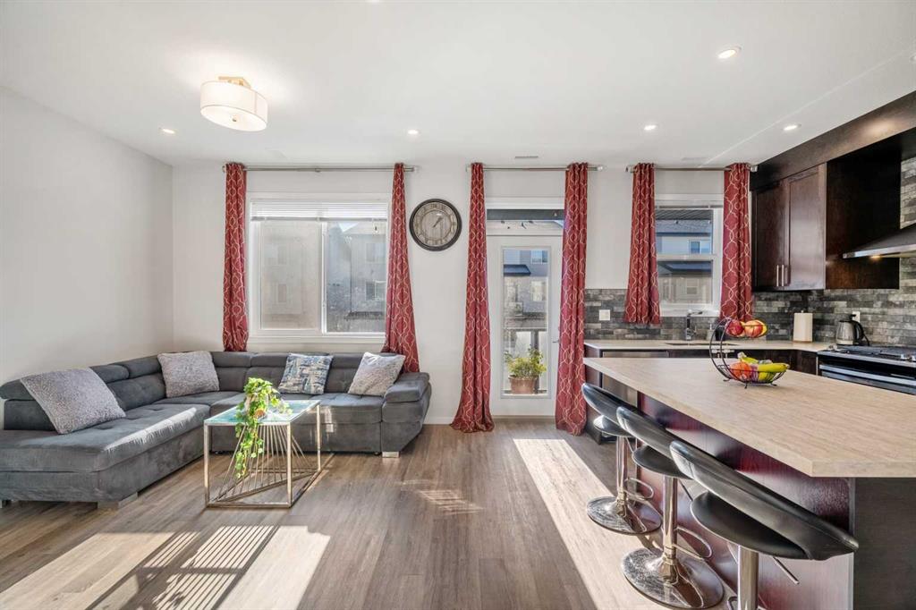 Stunning Townhome in the Heart of Redstone! Welcome to this beautifully appointed townhome, meticulously maintained by its current owners. This fully upgraded residence, featuring central air conditioning, is the perfect starter home in a vibrant, family-friendly community. Property Features: - Open Floor Plan: An inviting layout that maximizes space and natural light. - Upgraded Kitchen: Enjoy cabinetry to the ceiling, a large kitchen island for added counter and storage space, stainless steel appliances, and stylish pot lights—ideal for the master chef in your family. - Outdoor Living: Step out onto the spacious balcony, equipped with a gas line, perfect for summer gatherings with family and friends. - Main Level: Cozy living room and a convenient powder room. - Upper Level: Two primary bedrooms, each with its own ensuite, plus a handy second-floor laundry. - Garage: Attached insulated garage for your comfort and convenience. Additionally offers a variety of family-friendly amenities, including: - Playground & Expansive green spaces for outdoor enjoyment - BBQ and Pergola area for larger gatherings, including a fire pit Prime Location: Ideally situated near Stoney Trail, Metis Trail, and Deerfoot Trail, this home is just a short drive from: Calgary International Airport, Cross Iron Shopping center, many local restaurants and specialty grocery stores are also located in the vicinity. Residents also enjoy easy access to the Saddleridge YMCA, Don Hartman Arena, and Calgary Public Library, making it a convenient and vibrant place to live. Don’t miss the chance to experience the exceptional lifestyle that awaits you in Redstone! Schedule your viewing today!