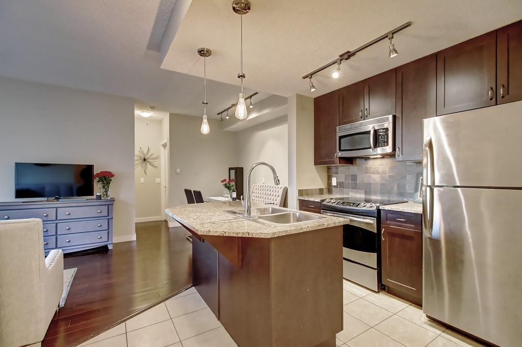 This is the best time to own this beautiful property right by the river! Conveniently located in the sought-after neighborhood in Mission. This condo unit is perfect for individuals or couples working in downtown and they can easily access Erlton C-Train station by walking. At night, the area is buzzing with all the new and trendy restaurants, shops, and pubs along 4th Street and 17th Avenue. La Rive is situated right off the river for you to enjoy morning runs along the path towards Repsol Sport Centre or Lindsay Park. This 1 bedroom unit boasts maple shaker cabinets with granite countertops and stainless steel appliances. The living room and dining area have upgraded dark hardwood flooring with a gas fireplace perfect for cozy evenings at home. This is an amazing unit to rent out for those looking to own an investment property. Call your realtor and schedule a showing! ***Please note the photos were taken from a previous tenant and the exterior of the building has been freshly painted***