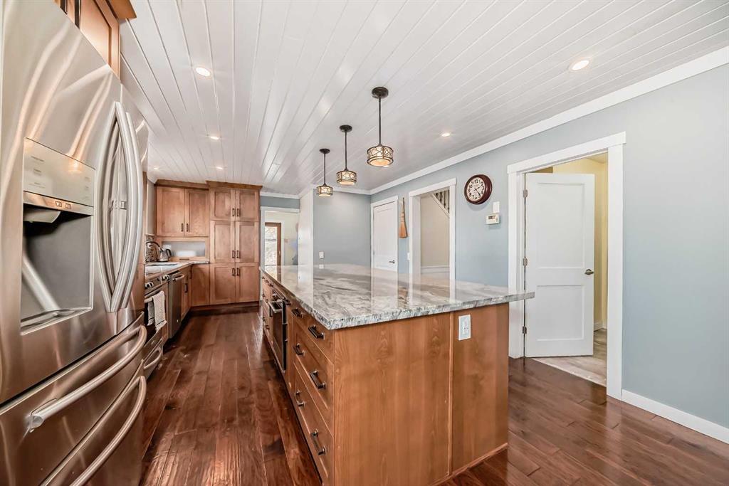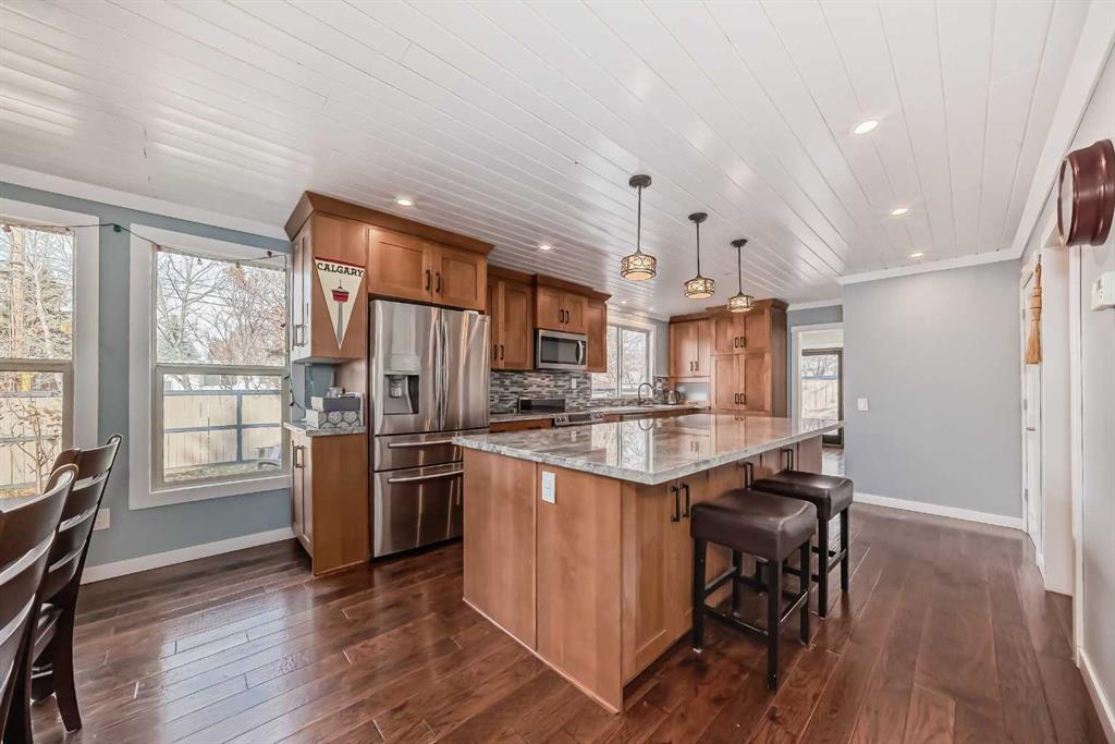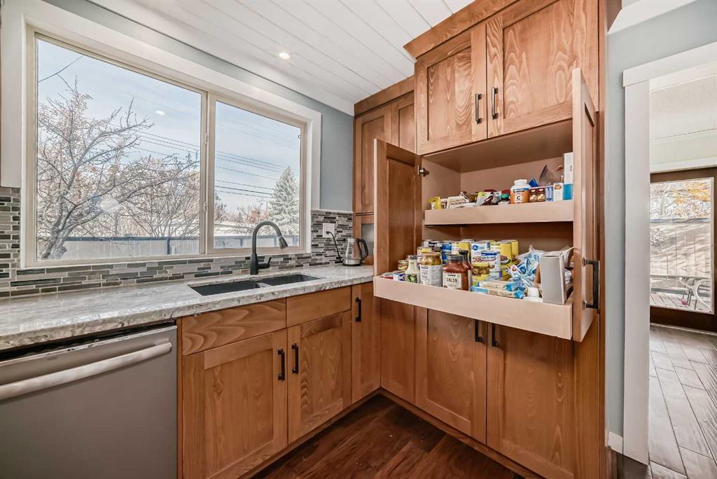 PRICE DROP NOV 17. Welcome to this large 2 - storey home situated on a "corner lot" in the heart of Varsity Acres. Home is walking distance to 3 schools in the area along with Bowmont Park, Market Mall, & Dalhousie C-train station. The kitchen was completely remodeled in 2016 with maple cabinets, granite counter tops, a huge island with tons of cabinets etc.. Newer engineered hardwood on the majority of the main floor. Off the kitchen is a wall of additional cabinets, wine fridge and additional counter space. A spacious living room with a wood burning fireplace of which there are tons of windows bringing in natural light. Laundry room with additional storage is off the kitchen. Upper level has 4 good size bedrooms. Great for a large or growing family. Primary bedroom has a walk in closet along with a secondary closet. The 5 piece bathroom was remodeled and has dual sinks + quartz countertops & newer flooring and bathtub. The lower level is extremely spacious with a large living room, a kitchenette area with Fridge & dishwasher along with cabinets and counter space. A large dining area as well and could easily be a 2nd dining area for adults or teenagers. A large flex room as well which could be converted into a bedroom. A 3 piece bathroom with shower unit has been recently updated. Original sauna as well which could be hooked up. A large north facing backyard with a huge deck (15ft x 24ft) + firepit area. Home is close proximity to the Varsity Park which is a large ravine in the area. Great opportunity to live inner city in a large 2 storey home that's walking distance to a number of premiere schools.