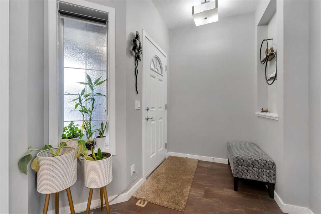 Welcome to this fully upgraded 3-bedroom, 3.5-bathroom, 2-storey home in the sought-after Skyview Ranch, offering over 2,500 sq. ft. of thoughtfully designed living space. Step inside to a grand open foyer that leads into a bright and airy main floor, boasting 9-foot knockdown ceilings and large windows that fill the space with natural light. The living area features pot lights and a coffered ceiling, creating a warm, inviting ambiance. The gourmet kitchen is a chef's dream, complete with Espresso-stained, ceiling-height cabinets crowned with molding, a granite sink and countertops, a large island with seating and storage, and premium stainless steel appliances. Adjacent is a spacious dining nook and a convenient walk-through pantry leading to a mudroom off the extended garage. The main floor also includes a central vacuum system with attachments for added ease. Upstairs, the master suite is designed to accommodate a king-sized bed and features an ensuite with a soaker tub, double vanity, and a beautifully tiled shower. The upper level also includes two additional bedrooms with blackout blinds, soundproofing between floors, and a laundry room for ultimate convenience. The fully finished basement provides a large recreation room, a full bathroom, and built-in speakers for entertainment. Other premium upgrades include central air conditioning, custom closets, slow-close cabinets and drawers, and upgraded blinds throughout. Outside, enjoy your 16x10 deck overlooking an extra-large lot—perfect for entertaining or relaxing. Don’t miss this exceptional opportunity to own a move-in-ready home with all the modern comforts and style upgrades! Call today to book your showing!