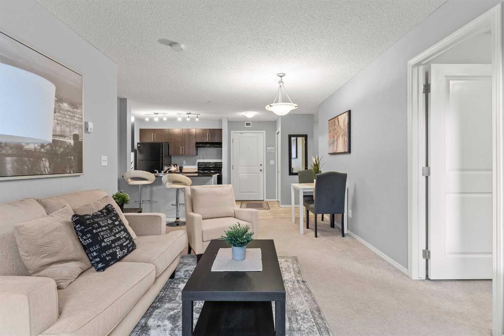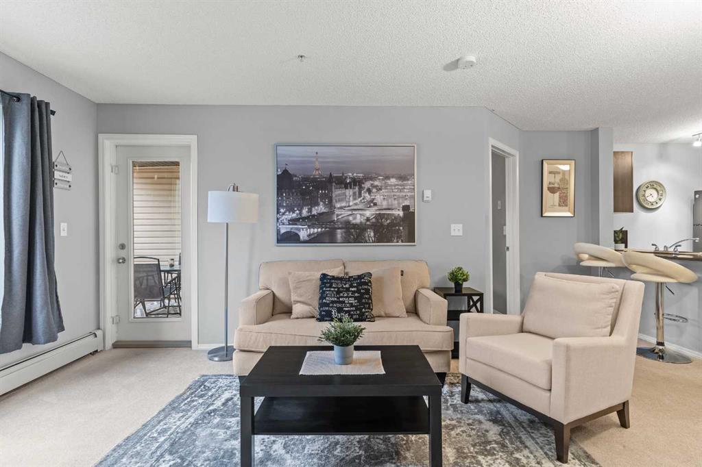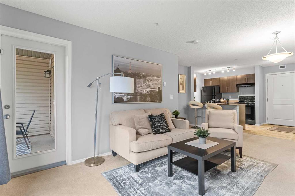 Welcome to this stunning second-floor condo, where style meets convenience in the vibrant heart of downtown Airdrie. Whether you're a FIRST-TIME HOME BUYER, SAVVY INVESTOR, RETIREE, or DOWNSIZER, this versatile condo is perfect! Featuring 2 BEDROOMS, 2 FULL BATHROOMS, and a DEN, this space offers both comfort and functionality to meet your lifestyle needs. Upon entry, you'll be greeted by an inviting OPEN-CONCEPT LIVING AREA with a seamless flow between the living room, dining area, and modern kitchen, which is adorned with GRANITE COUNTERTOPS and WOOD CABINETRY. The kitchen is ideal for cooking enthusiasts who enjoy a spacious and stylish setup. Need extra space? The DEN provides the flexibility you crave—a perfect HOME OFFICE, STUDY NOOK, OR EXTRA STORAGE AREA to suit your lifestyle. The PRIMARY SUITE offers a tranquil escape with a WALK-IN CLOSET and a private 4-PIECE BATHROOM for a touch of luxury. On the opposite side of the condo, you'll find the SECOND BEDROOM with its 4-PIECE BATHROOM, ideal for guests or family members. Step out onto the QUIET, SOUTH-FACING BALCONY—a serene spot enveloped by privacy trees, perfect for enjoying your morning coffee or winding down in the evening. And with TITLED UNDERGROUND PARKING, you'll have peace of mind knowing your vehicle is secure and easily accessible. Nestled in a WALKABLE COMMUNITY with countless amenities, this location is unmatched: WALKING PATHS, GROCERY STORES, GYMS, SHOPPING, COFFEE SHOPS, AND BUS ROUTES are all steps away. Everything you need is outside your door, whether grabbing a quick bite, shopping for essentials, or enjoying the nearby PARKS AND RECREATION. Don't miss your chance to own this fantastic URBAN SANCTUARY that offers the best downtown living with comfort and convenience. This condo truly has it all—schedule your viewing today and experience the allure of downtown Airdrie living!