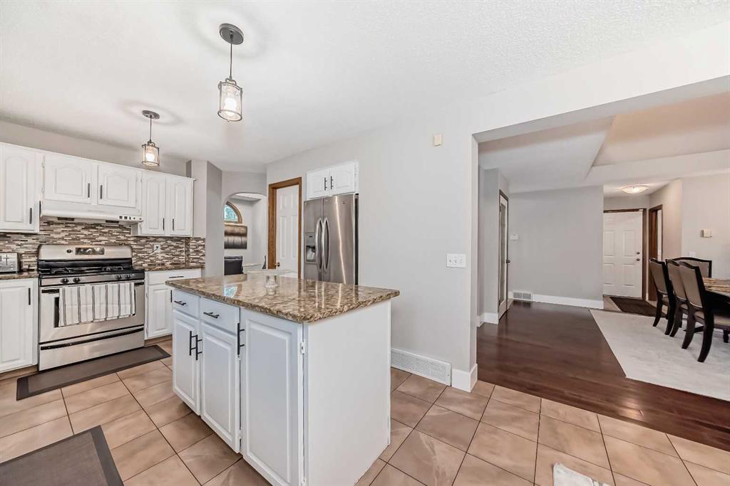 Welcome to this lovely 4-bed, 2-storey home, boasting almost 3000 sq ft of living space. Located on a quiet cul- de- sac in the desirable, family-friendly community of Hawkwood. Upon entering this home you’ll love the open floor plan and the vaulted high ceilings. This home provides large windows for a lot of sunshine. The spacious main floor offers a seamless flow featuring a bright living room with refinished original hardwood flooring in 2015, a beautiful brick dual sided gas fireplace. Formal dining room with an inviting bay window perfect for entertaining family and friends. Open to a newly renovated kitchen boasting granite countertops, island, stainless steel appliances, tile flooring, an oversized pantry and plenty of cabinet space. Adjacent to a nook area ideal for your morning coffee. Out the sliding door and on to the sunny private backyard where you will enjoy quiet evenings around the fire pit. Up the stairs to the second floor featuring a spacious master bedroom with a big size walk-in closet, a well-lit 5-piece ensuite, the skylight gives it added brightness, a jetted tub to wind down after a long work day. Two additional good-sized bedrooms and another 4-piece bath, making this the perfect family home for you. The basement is an illegal basement suite with large windows for added brightness, it also offers a fourth bedroom, a 3-piece bath, a kitchen, a huge rec room, and plenty of storage. This great home has a big southwest-facing backyard, a very spacious double attached garage. In the last 2 months this home has gone through a paint job through out and all toilet bowls were changed. Close to many amenities, shopping, restaurants, schools and transportation. This home is a must to see. Don’t miss out on this opportunity to get into this great home in this family-oriented neighborhood.